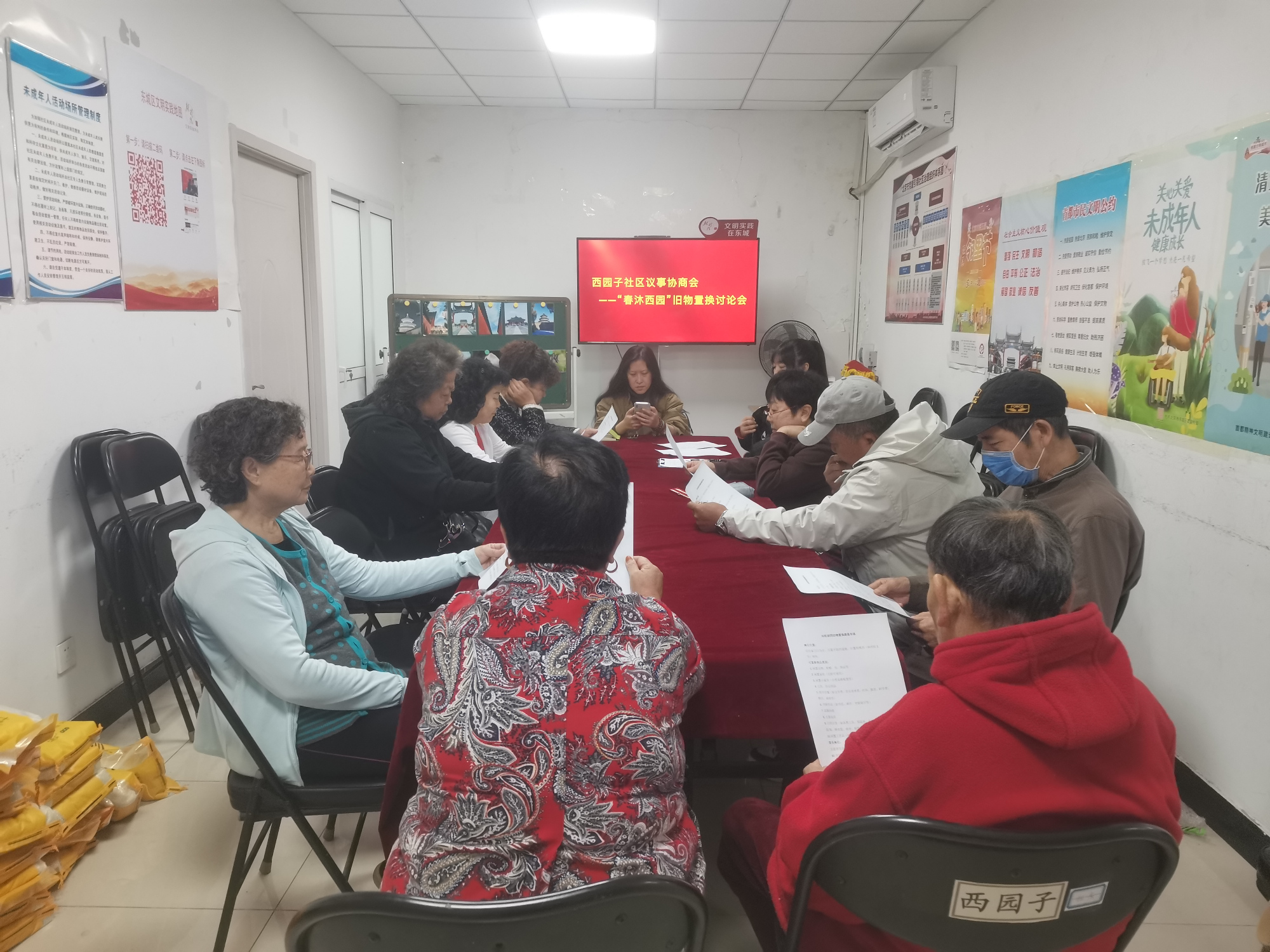 10月20日,按照计划在西园子社区召开“春沐西园”服务居民议事协商会,天坛街道社会工作服务中心现场进行实务督导:引导居民协商确定旧物置换活动第一次举办时间;讨论并确定旧物置换规则,包含可置换品类;讨论物品登记管理事项,议定推选物品登记统管人员;制定服务摊位的相关规则等内容。