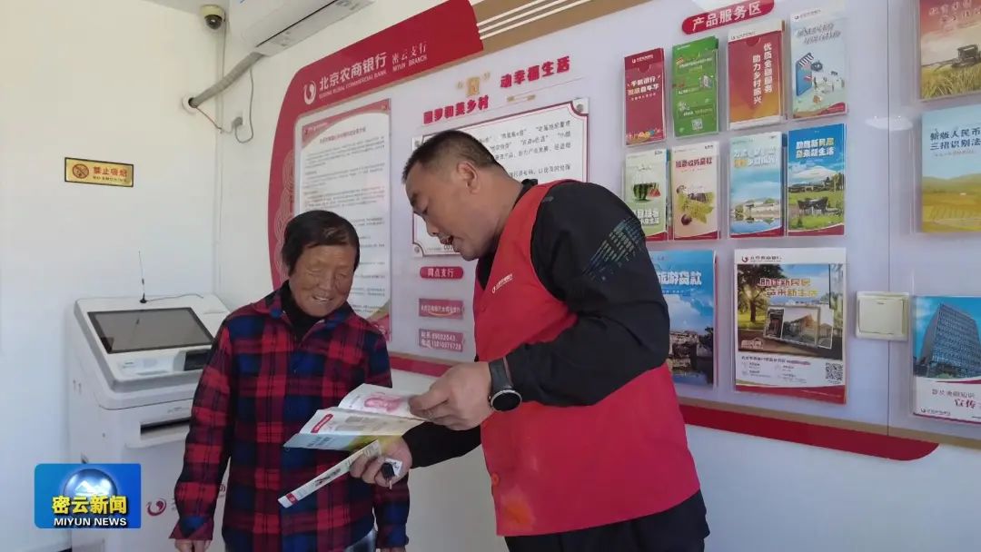 作为北京市3家试点驿站之一的小漕村浓情驿站,通过银行的自助服务机+辅导员的模式向村民提供小额助农取款、现金存款、缴费充值等基本金融服务,使村民足不出村即可满足日常近80%的基本金融服务需求。同时驿站内配备文化墙,摆放了各类金融、防诈骗手册。
