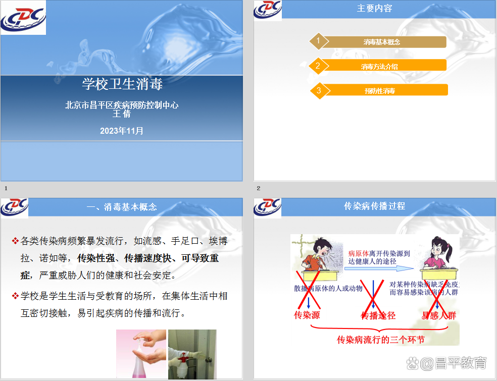 区疾控中心消毒科王倩老师围绕“学校卫生消毒”这一重点进行了科普,详细讲解了学校和托幼机构消毒方法与措施。