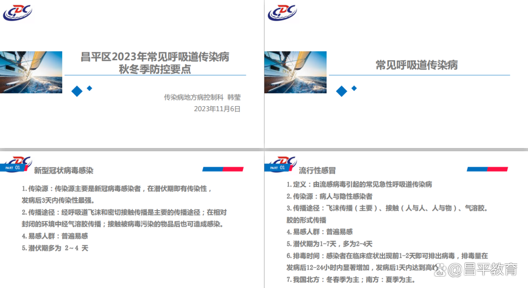 区疾控中心传染病地方病控制科韩莹老师讲解了常见呼吸道传染病秋冬季防控要点,并提出了校园传染病预防控制办法及处置措施。