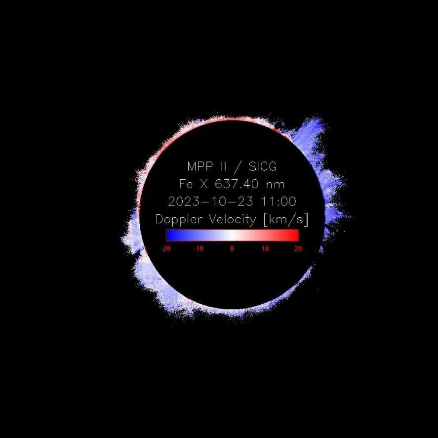 日冕红线(Fe X 6374 Å)谱线多普勒速度图像(待定标)