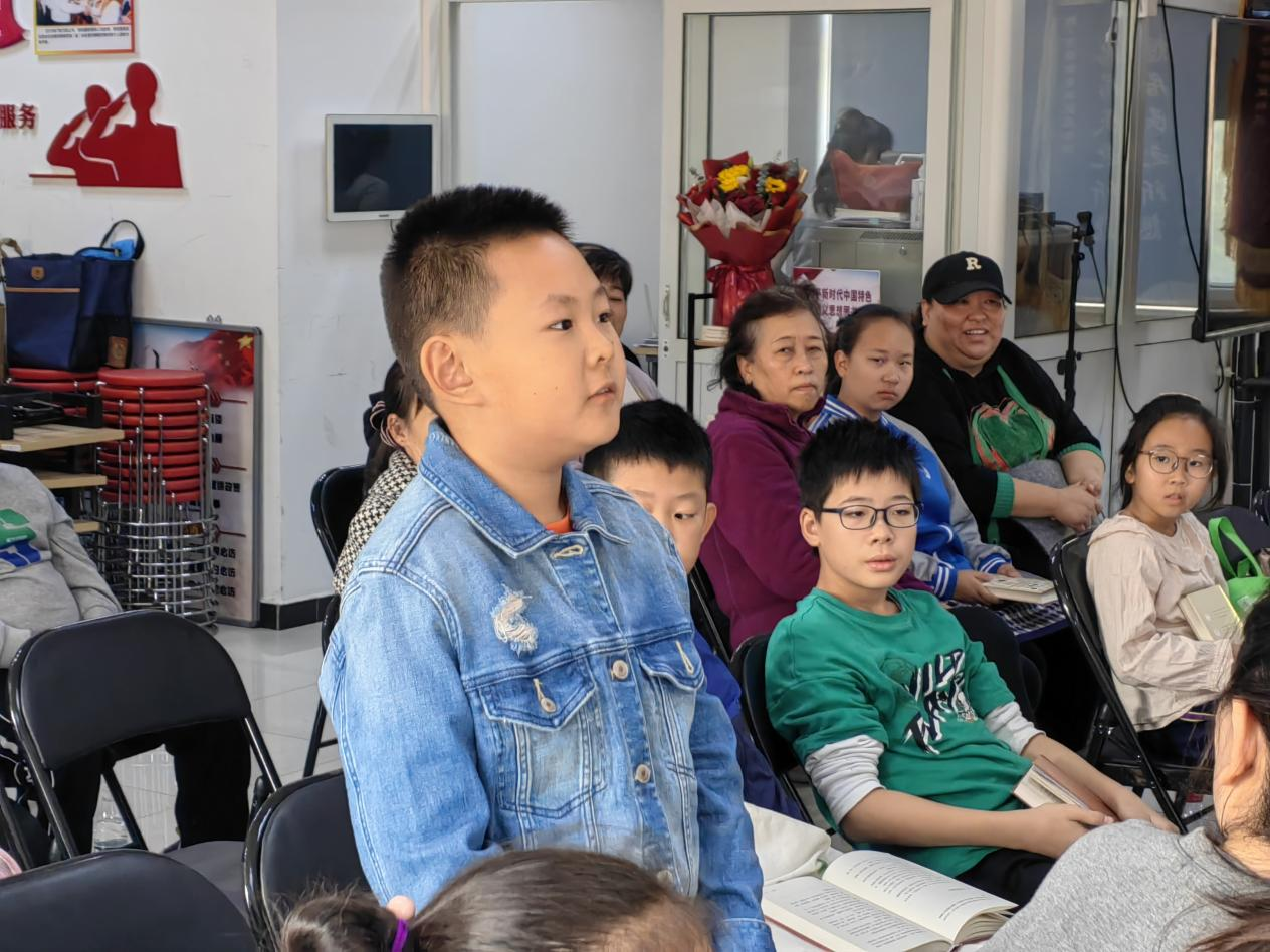 “我在我女儿三四岁的时候就教她读《弟子规》《三字经》等中华传统经典,但因为读得断断续续,也不成系统,得知东高地党群服务中心有这样的传统文化读书分享会,我第一时间就带孩子来参加了,孩子说很有意思,下次还要来。”孩子家长王女士说道。“听了刘老师的课受益匪浅,礼仪教育、规矩学习是人生第一课,接下来我们要从小事做起,从规范自身行为做起,做一个有‘礼’之人。”东高地三小硕硕小朋友说道。读书分享会在积极热烈的讨论中画上圆满的句号。