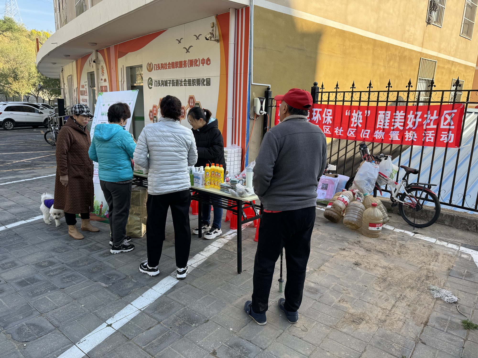 为了减少废旧物品对环境的危害,工作人员在进行置换物品的同时,不断和居民宣传垃圾分类的重要性,增强居民的环保意识。