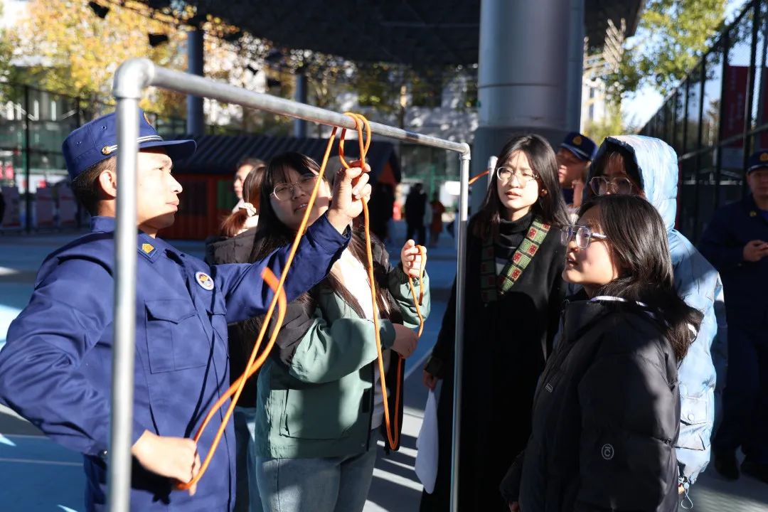 为丰富活动内容,活跃宣传氛围,启动仪式现场设置了知识科普区、装备器材展示区、活动体验区等。学生们在消防员指导下学习使用灭火器材、绳索打结,亲身体验火灾现场浓烟环境下的自救逃生过程。