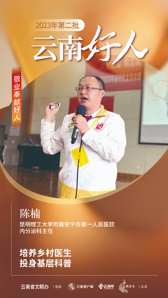 陈楠,男,汉族,1983年7月出生,中共党员。从医16年来,陈楠致力于提高乡村医生的慢性病管理水平,每年培训基层医生上千人次。同时,他积极投身基层科普工作,10年间主讲科普讲座超过100场,受众超过20万人次。