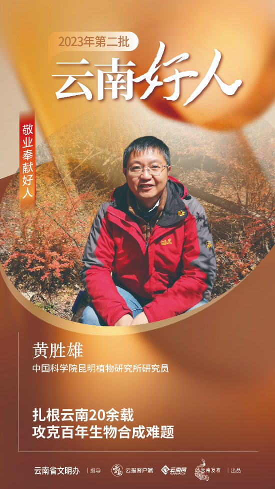 黄胜雄,男,汉族,1978年3月出生。在20余年的科研工作中,黄胜雄扎根云南,奋斗一线,以药用植物中活性天然产物的发掘为起点,利用现代分子生物学技术平台,实现系列天然药物的生物合成机制解析,为重要临床药物的创新生产奠定坚实基础。其间,获“国家杰出青年科学基金项目”资助等荣誉。