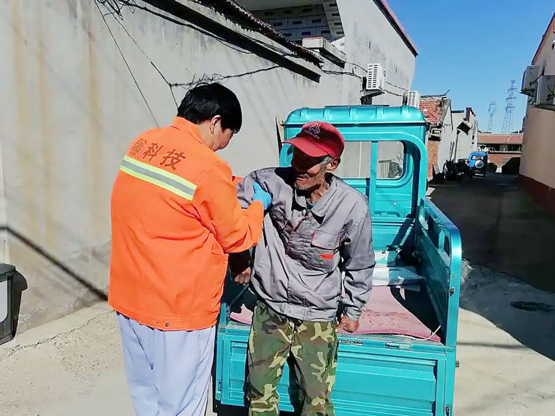 经过多次详细询问,王小青得知老人住在九王庄村的女儿家,早上出门突然头晕坐在了地上,忘记了女儿家的位置。当时,九王庄村村民王艳霞恰巧路过,看到这样的情况,主动伸出援手,不仅打听到了老人女儿的住处,还用车帮助王小青把老人一起送回家。