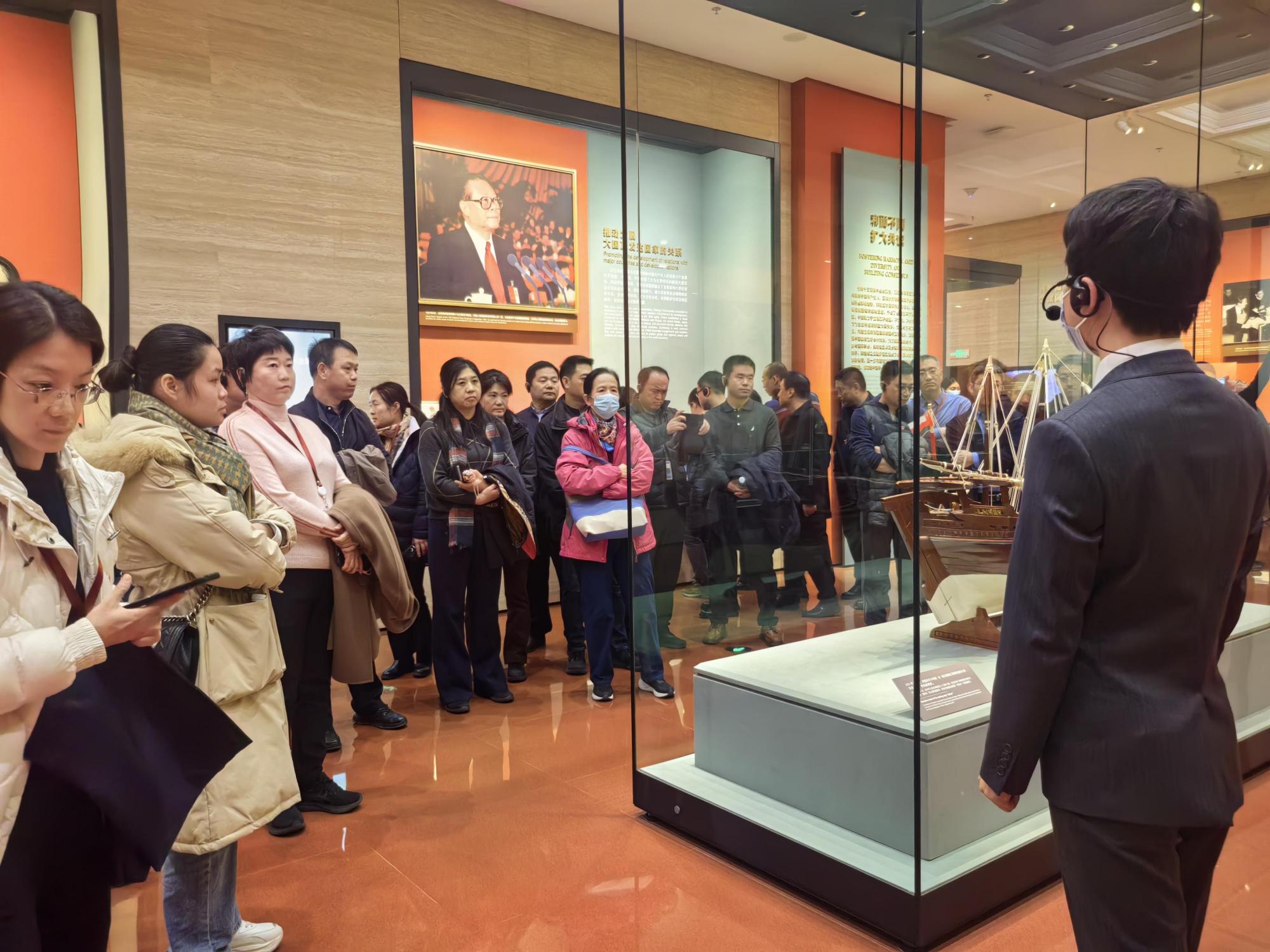 观对外交往进程,品外交壮阔篇章。中央礼品文物管理中心,内有常设展览《友好往来 命运与共——党和国家领导人外交活动礼品展》。在讲解员的带领下,学员们参观了三个专题展区,第一展区是中华人民共和国成立至今历届国家领导人收到的礼品,第二展区是党的十八大以来主场外交活动的对外赠礼,第三展区是按照地域划分的国际礼物。展览从一个侧面记录了我们党和国家的外交历史,展现了我国和世界各国政府、政党人民及国际组织的友好关系,也体现了我国为维护世界和平与发展做出的贡献。