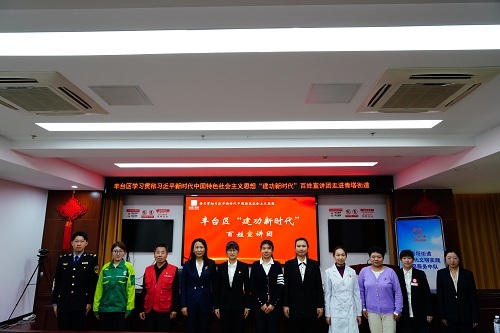 宣讲会上,花乡花木集团公司的李旭燕在《花开盛世 丰宜福台》中讲述与同事修建自动化养殖温室,还走访全国各地乃至国外搜集引进优良品种;丰台区人力资源和社会保障局的唐诺仪在《就业之路 伴您同行》中分享自己用心用情为人民群众提供优秀岗位,服务区域经济发展的工作经历。马家堡街道时代风帆楼宇党群服务中心的张旸在《商务楼宇党旗飘》中讲述时代风帆楼宇党群服务中心帮助企业解决实际困难,用真心关心贴心守住为企业服务的初心,让党的旗帜在商务楼宇中高高飘扬;丰台区卫生健康委员会的刘娇被扶上宣讲台,在《一路有我 一路生花》中分享自己的经历,虽然视力只有0.01,但在父母的支持下她坚守梦想克服重重困难,最终实现了自己的梦想成为了丰台社区卫生服务中心中医科的医生,全力为人民群众服务;和义街道的社区工作者郎俊宝在《流动的热线》中分享自己的工作动态,她时刻将辖区居民的需求放在首位,全心全意做好接诉即办工作。长辛店街道的尹喜军在《小胡同的文化人》中分享自己累计收集老物件3000余件,建立了长辛店民俗老物件陈列展馆,将老物件与红色文化串联起来。北京市规划和自然资源委员会丰台分局的胡雪珂在《守好丰台这片土》中讲述在岗期间号召全民保护耕地,为民执法时既保证力度又伴有温度。北宫镇的钟学梅在《普法,我们在行动》中向大家讲述普法是他们日常生活中的关键工作,他们深入开展法治宣传教育,提升人民群众的自我保护意识。丰台区委社会工作委员会丰台区民政局的冯帆在《点亮幸福“夕阳红”》中讲述自己的工作就是让老年人食有所依,同时也让老人爱有所依,工作期间和同事为老年人提供多项入户服务,让更多老年人乐享夕阳红。北京市致诚律师事务所的张雪梅在《争做党和人民满意的好律师》中表明自己始终致力于妇女儿童权益保护,未来也将继续服务中国法治建设,争做中国好律师。北京公联洁达公路养护工程有限公司的郝文达在《“首”好每一班岗》中说自己作为一名巡查员,在平凡的岗位上做着不平凡的工作,秉承“求实、创新 、协作、敬业”的理念,守护着首都千千万万的人民出行安全。