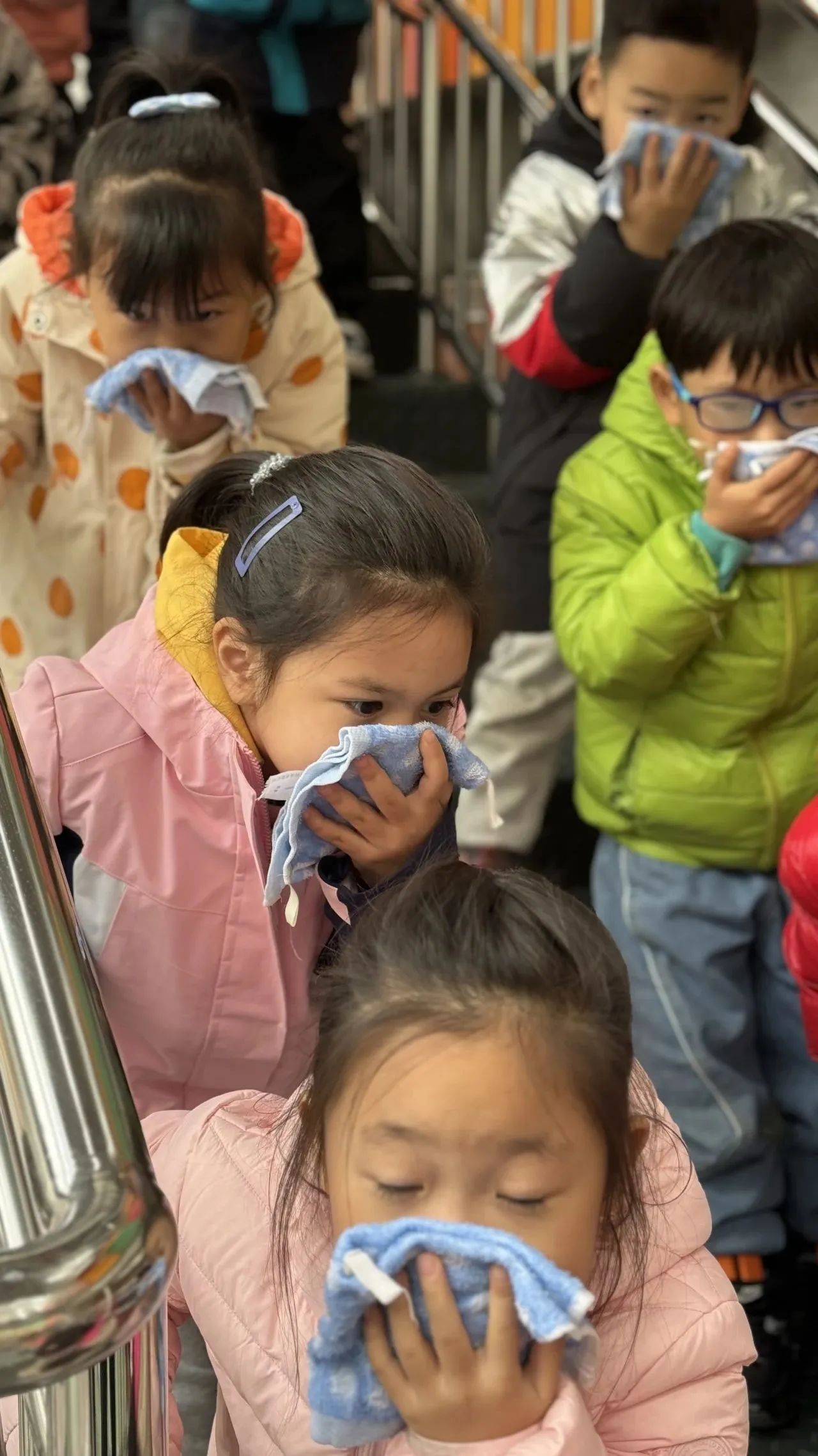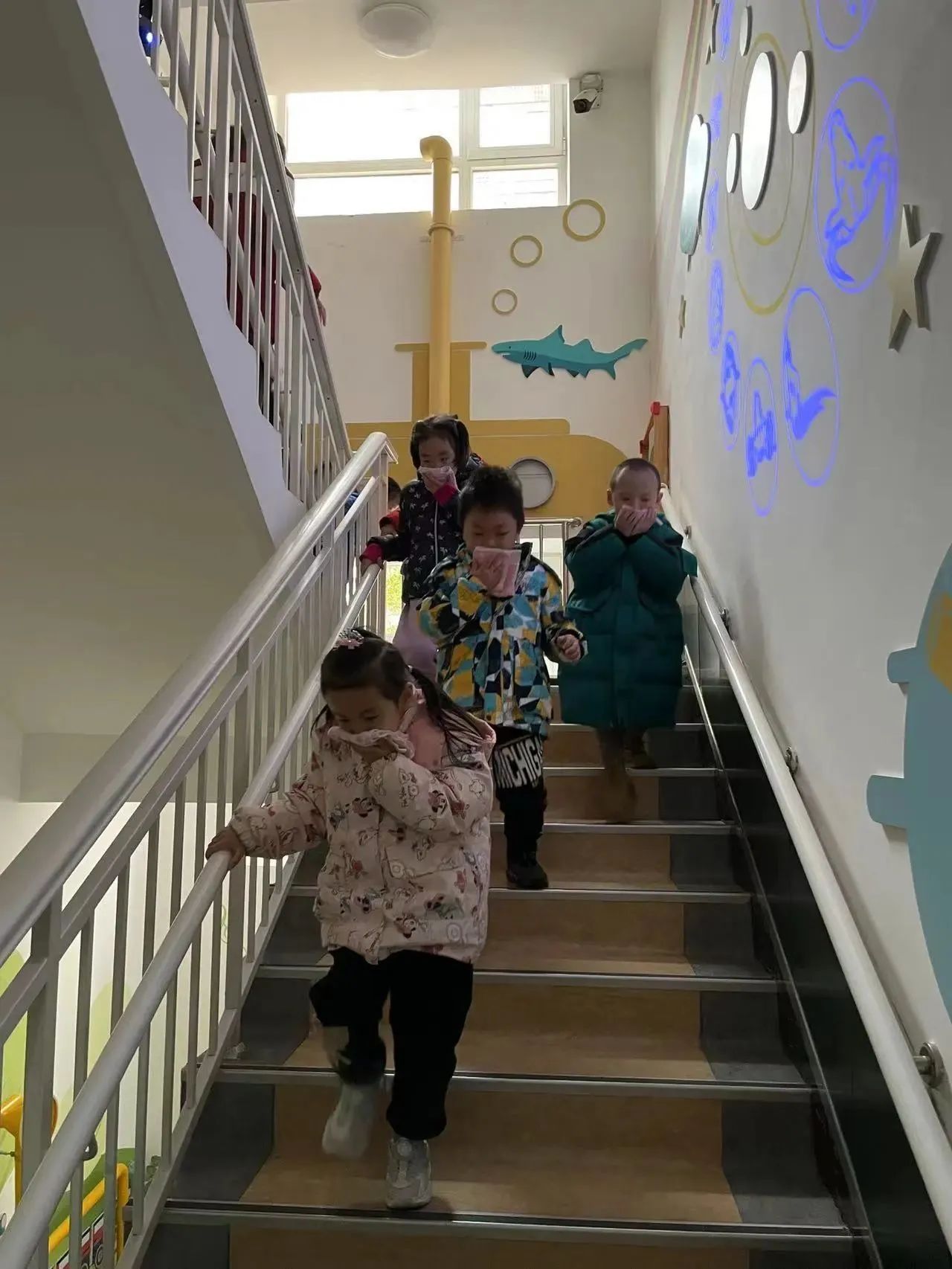 11月15日上午9:13,芳庄二幼开展消防演练。随着警报声的响起各班老师马上发出指令“发生火灾,大家用湿毛巾捂住口鼻,弯下身子,按照顺序前进,不能推挤。”各班幼儿在老师的指挥下准确地按照指定路线撤离到“安全地带”。用时2分15秒。