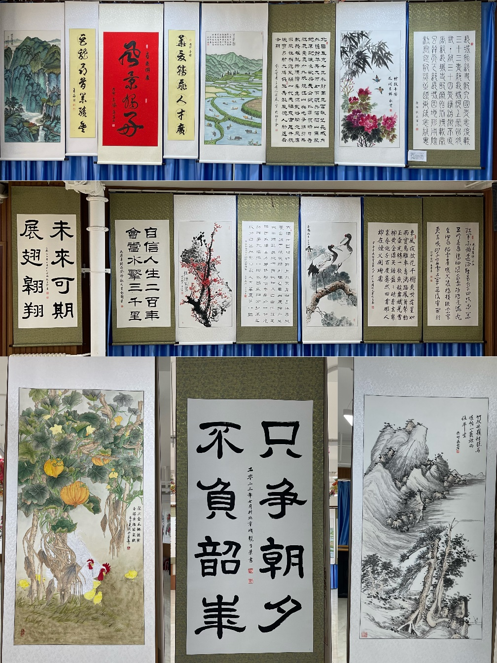 活动展出了来自社区居民的众多优秀书画和摄影作品,书画展共展出作品70幅,其中国画山水、花鸟画作品25幅,书法作品45幅。这些作品题材丰富、意境深远,都是居民中书法绘画爱好者的闲暇之作。作者以独到的审美情趣和生活体验,以书言志、以墨传情、以画达意,具有鲜明的思想内涵、精神内涵和文化内涵,富有强烈的时代气息和艺术表现力。