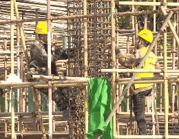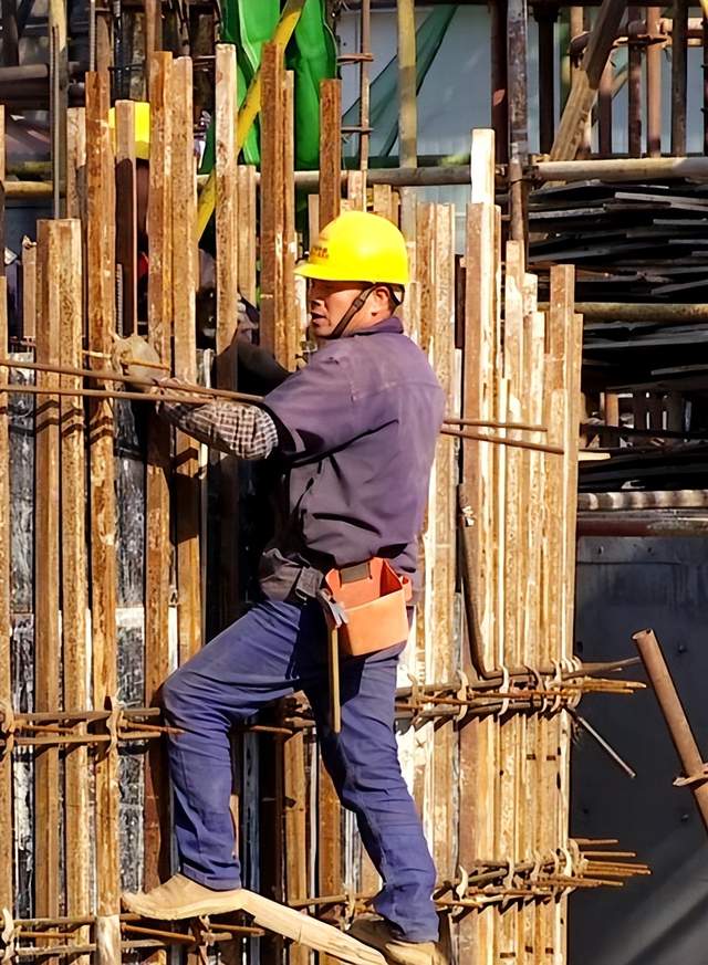 建筑工人们已经换上保暖的服装