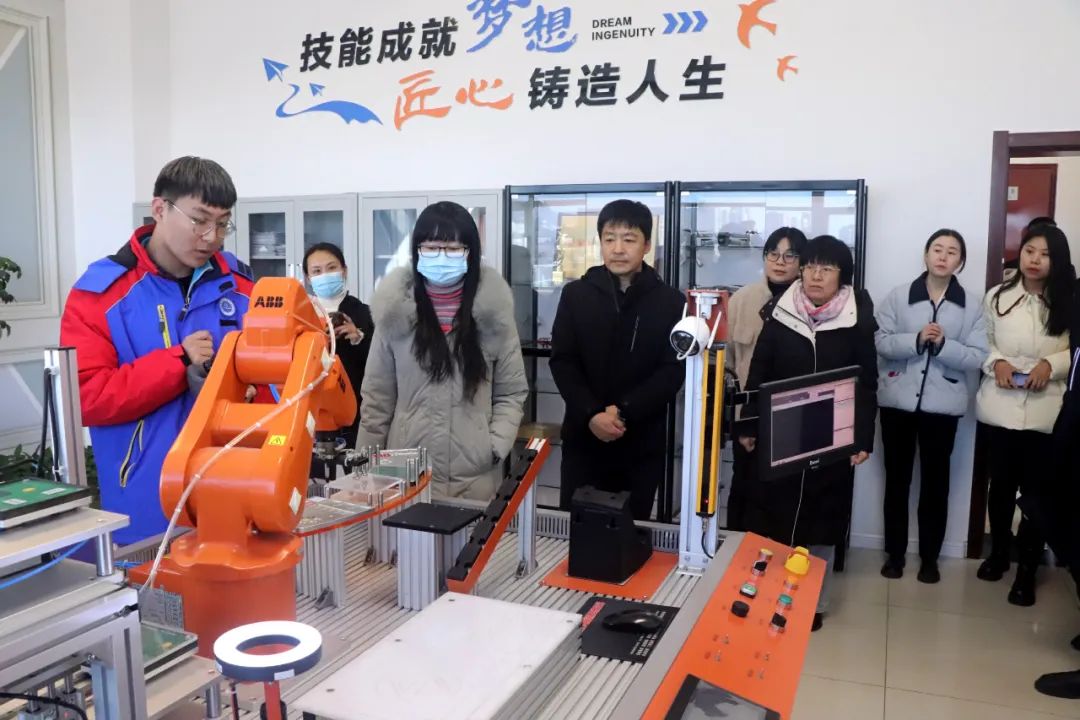 会前,在怀来技师学院相关负责人的陪同下,参会人员先后深入到学校智慧校园主控中心、录播室、大师工作室,护理、工业机器人、电子商务、联想云计算、汽修、数控、机电等专业实训室进行实地参观,聆听现场讲解,详细了解学校重点专业实训室建设和技能培养情况。