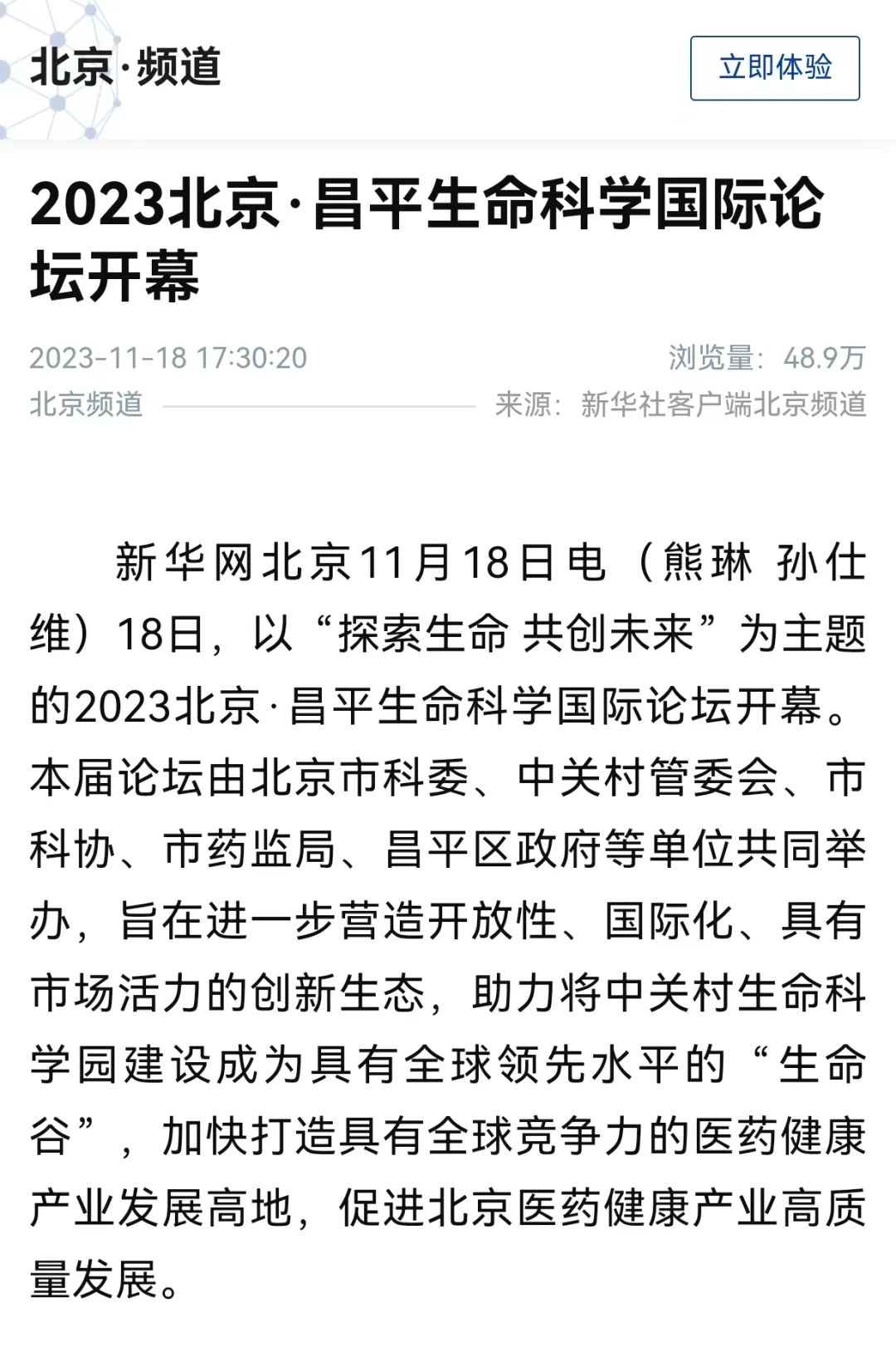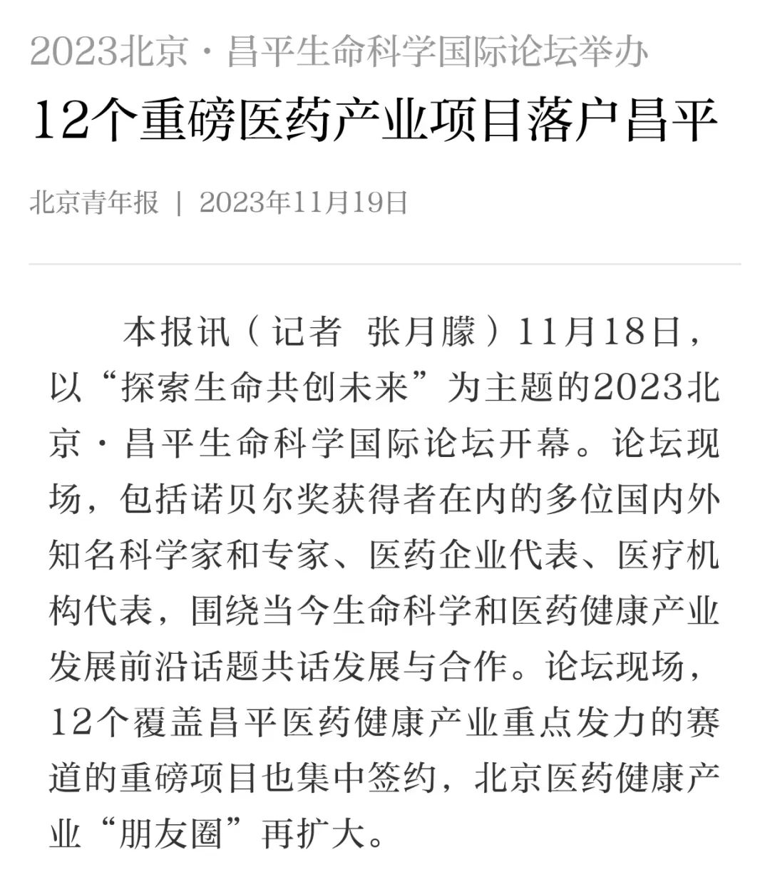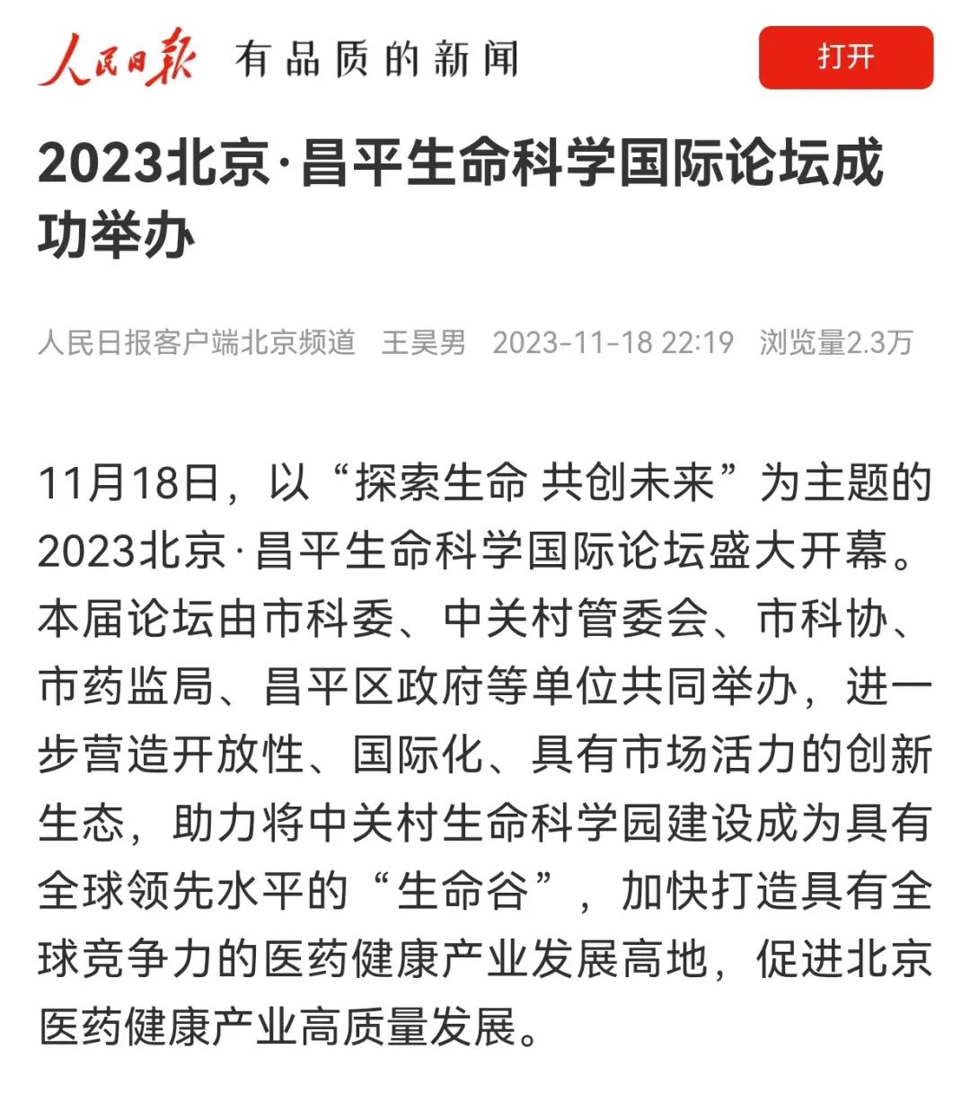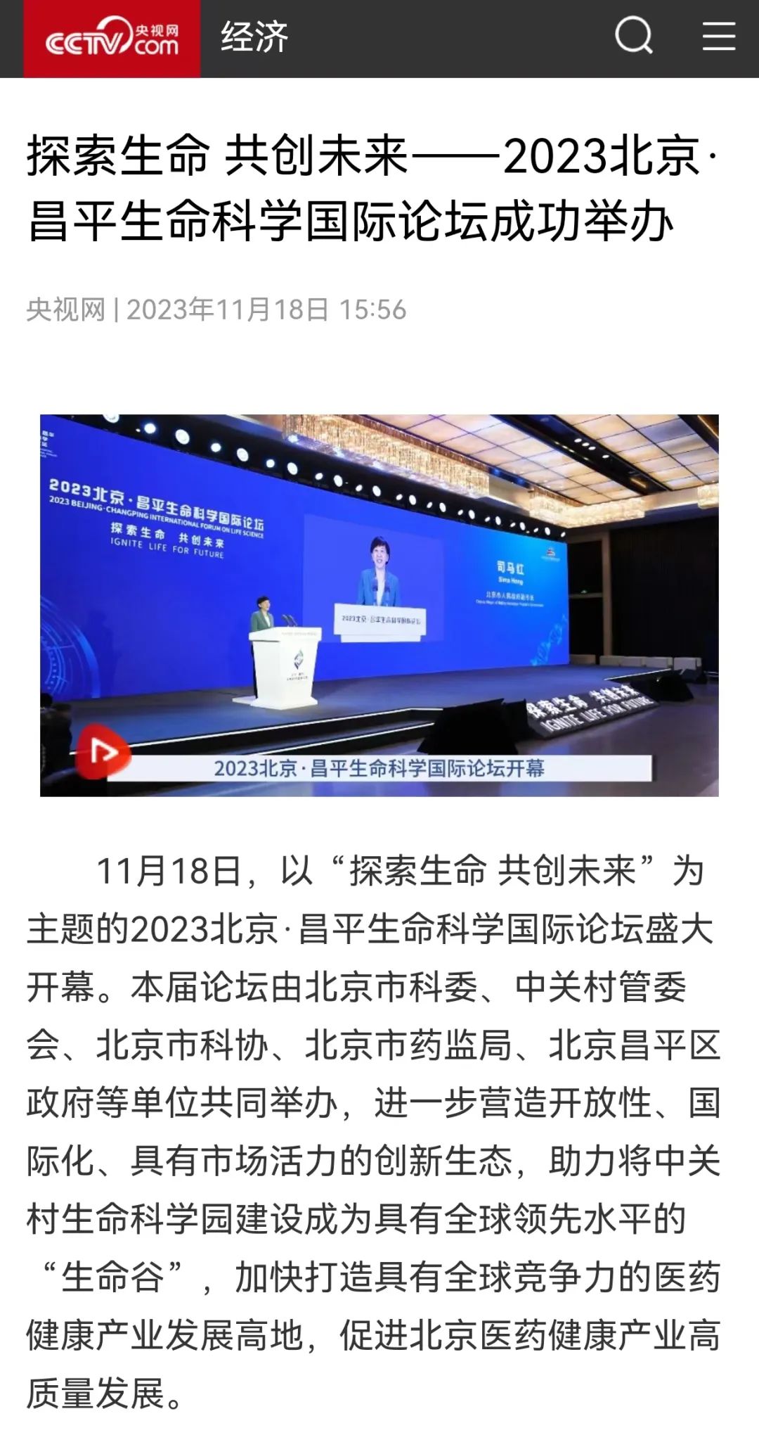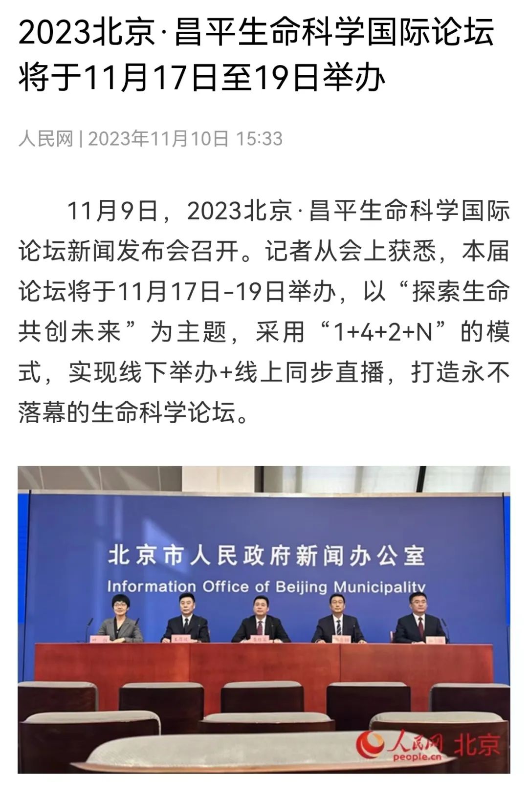 11月17日-19日,以“探索生命 共创未来”为主题的2023北京·昌平生命科学国际论坛在昌平成功举办。论坛期间,央媒、市级媒体纷纷将镜头聚焦昌平,发布多篇报道,共同见证了这场共谋发展的盛会。