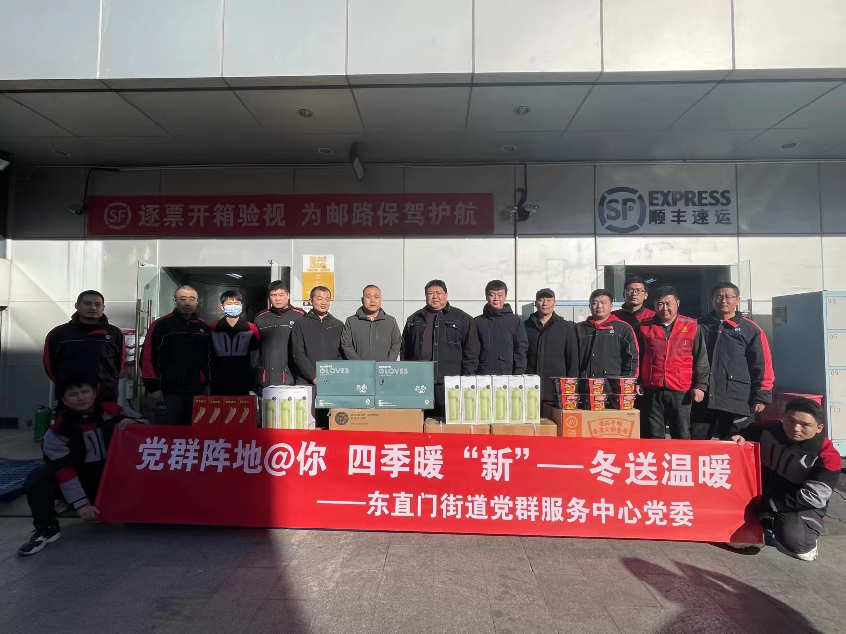 11月17日上午,东直门街道党群服务中心党委与街道总工会在顺丰快递十字坡站点联合开展“关爱新业态 暖心在冬季”送温暖活动。街道工委副书记、总工会主席甄云鹏,总工会副主席王健,顺丰快递安定门片区负责人田军义,顺丰快递东方银座业务部负责人侯建港及相关人员参加活动。
