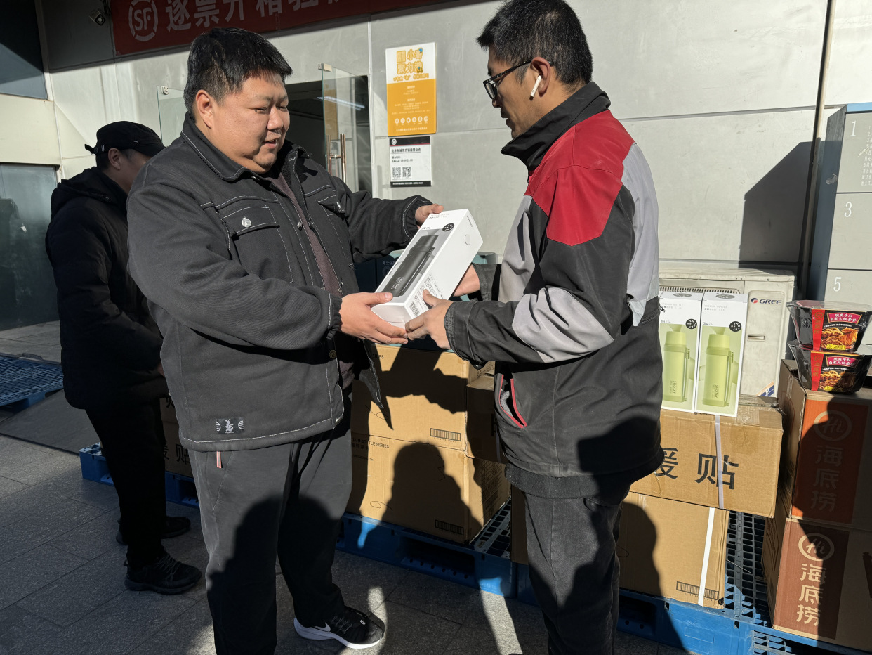 街道工委副书记、总工会主席甄云鹏为顺丰快递十字坡站点的快递小哥们送去暖贴、热水壶、棉手套、擦手油、自发热小火锅等慰问物品,并对顺丰快递十字坡站点在地区各项事业发展中所付出的努力表示真诚的感谢。顺丰快递安定门片区负责人田军义和顺丰快递东方银座业务部负责人侯建港对街道党群服务中心党委及街道总工会对他们给予的关心支持表示衷心的感谢。