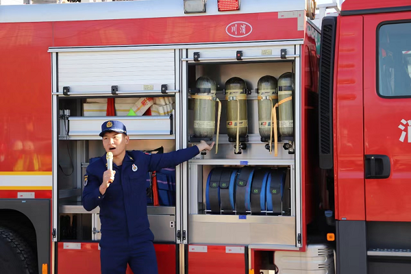 此外,消防救援人员还采取讲解和实操实训相结合的方法,围绕灭火器灭真火、消火栓出真水以及火场逃生演练等内容进行了实际操作,确保全体参训人员真正做到“小火会用灭火器、大火会用消火栓”。
