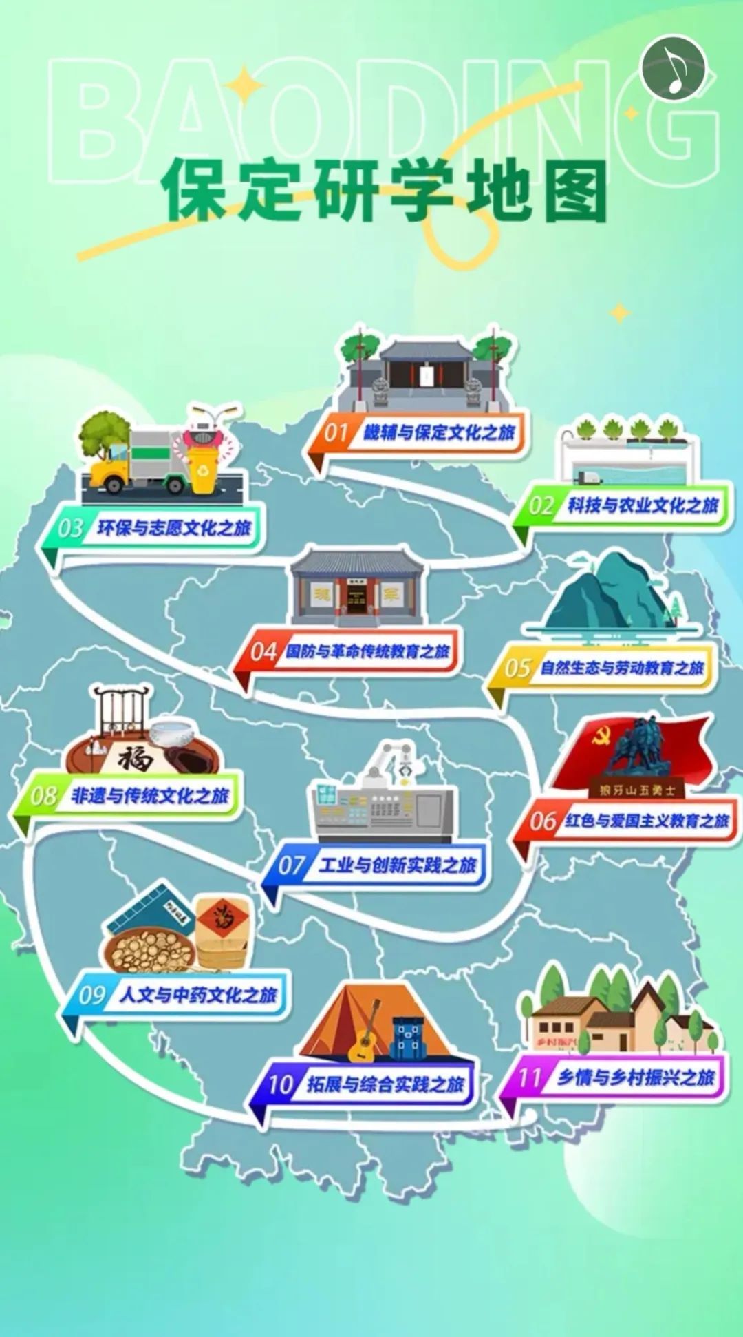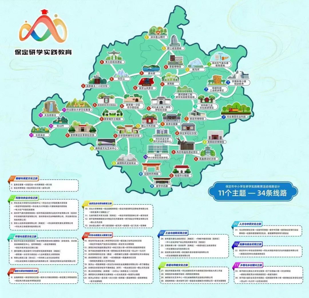 为更好发挥研学实践育人功能,在市教育局统筹下,保定市中小学综合实践学校精选研学资源百余处,设计线路34条,让广大青少年在研学路上感受保定的独特魅力!