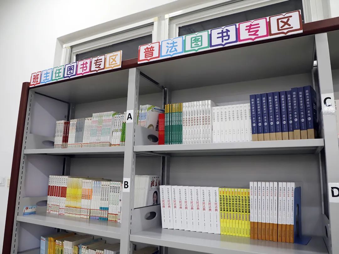 杨镇一中普法驿站活动室设置普法图书专区。