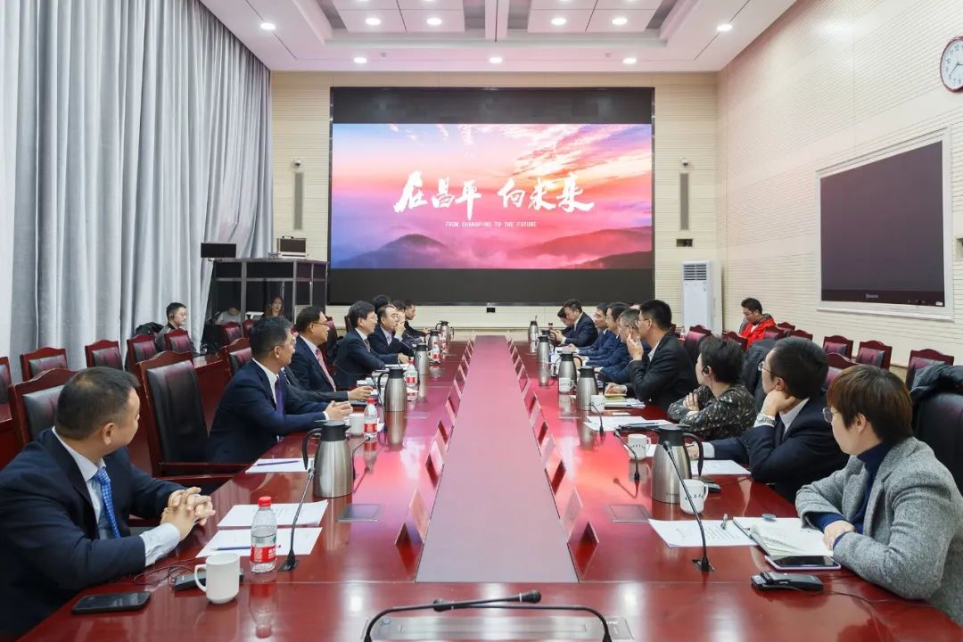 11月27日,昌平区委书记甘靖中会见韩国制药生物协会理事长、韩国HUONS集团会长尹圣泰一行。