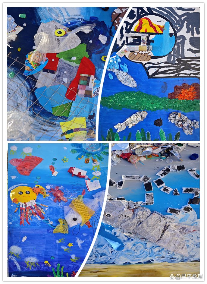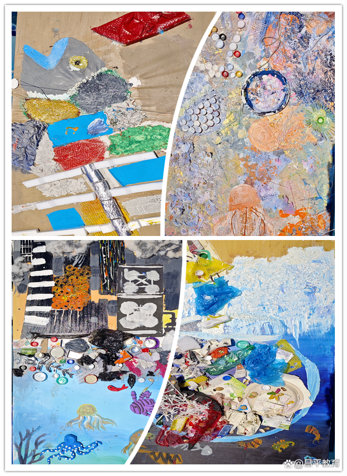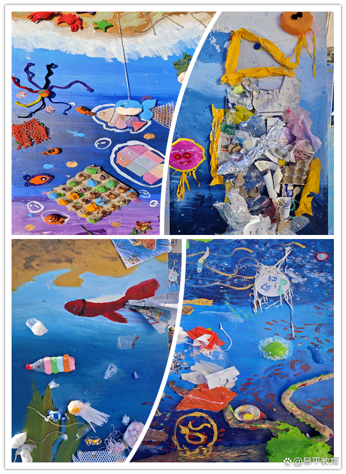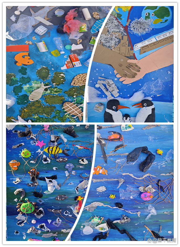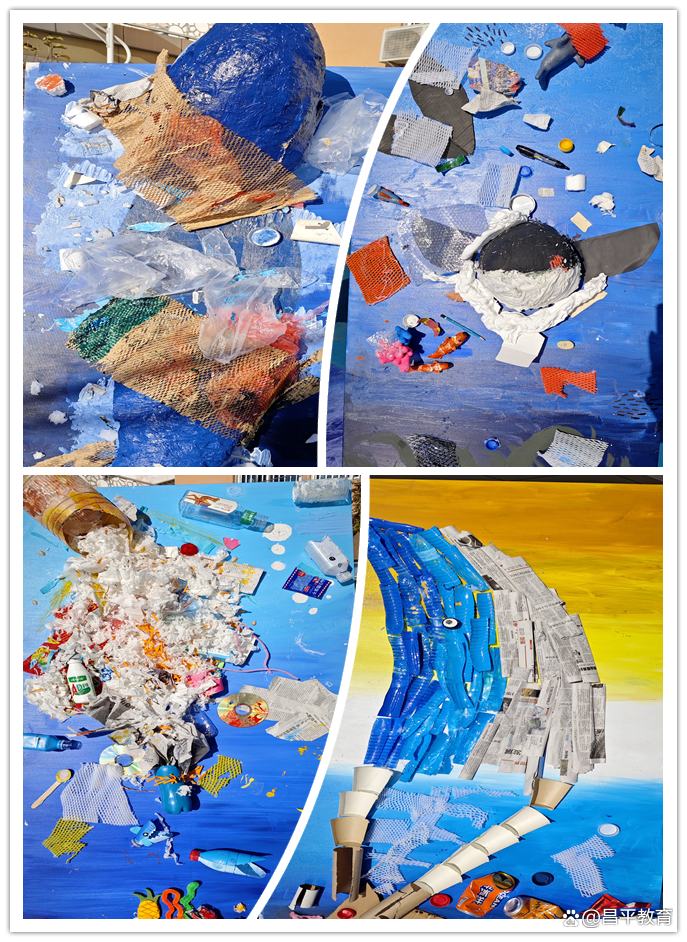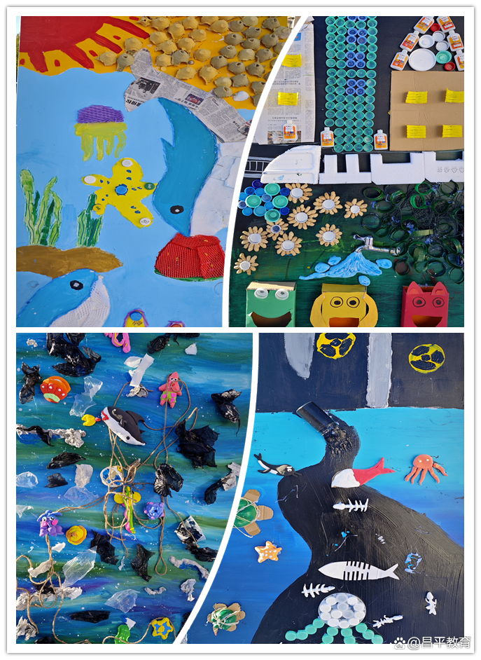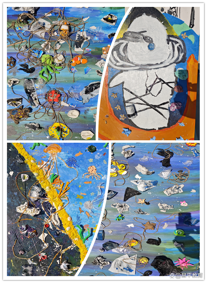 一项项精美生动的艺术作品——蓝海、浪花、鲸鱼等,来自同学们艺术创意的灵感迸发。丰富的作品表现着艺术的张力,触动观赏者对环境的思考。