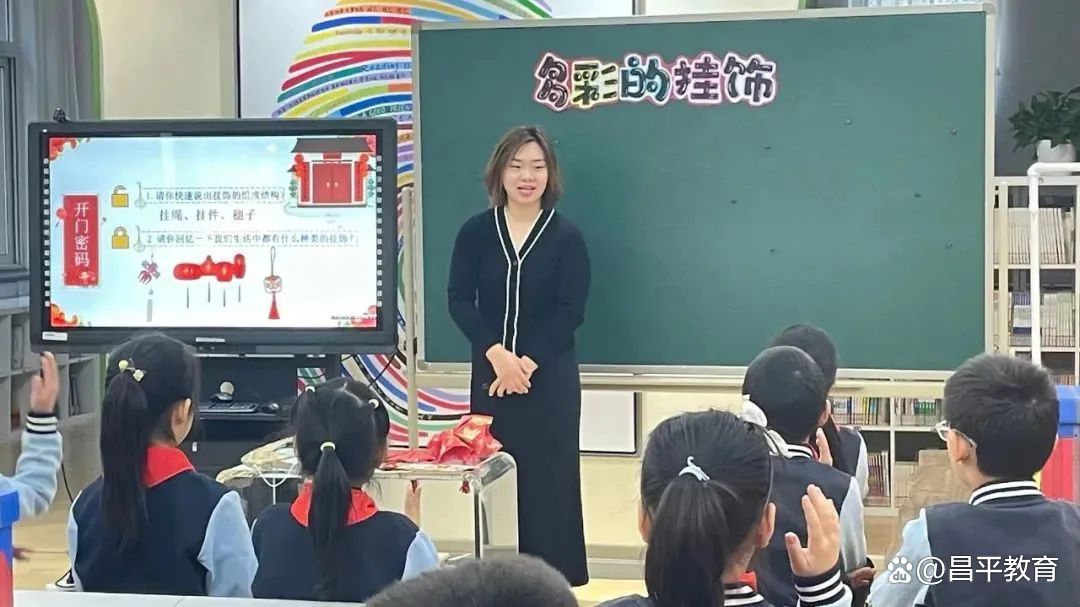 美术学科王佳硕老师执教《多彩的挂饰》,以“节日”为话题创设多元化课堂情境。教师以任务驱动式教学方式组织教学,结合生活实践经验,引导学生理解艺术与生活的关系。学生们化身为小小设计师,合作交流、共同学习新年挂饰的设计方法,利用废旧材料制作出了一件件精美的新年挂饰。