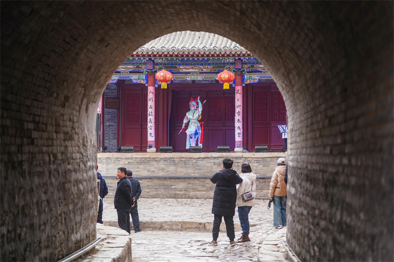 游客在蔚县暖泉镇西古堡村观看蔚县秧歌表演《扈家庄》选段(11月26日摄)。新华社记者 陈晔华 摄