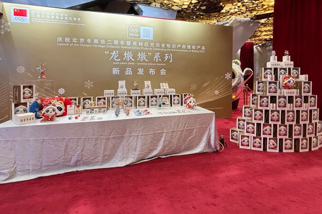 “龙墩墩”作为奥林匹克历史知识产权再次授权开发的文创产品,是“冰墩墩”与中国生肖文化的延续。“‘龙墩墩’选择‘舞龙’‘四海龙王’等传统文化特点作为创意基点,代表着人们对风调雨顺、平安、丰收的美好期望,融合了中华民族的龙文化和奥林匹克大家庭团结的主题。”设计师林存真介绍,“龙墩墩”系列新品既是庆祝北京冬奥会成功举办两周年,也是对即将到来的龙年送出新春的祝福。
