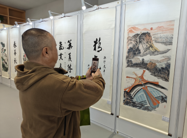 健步走的终点位于回龙观体育文化公园城市书房四层,这里正在举办“墨笔生花”2023年昌平区职工书画作品展,职工们打卡后在此游览、拍照。展览将持续展出到12月10日,活动期间对外开放、无需预约,市民可免费参观。