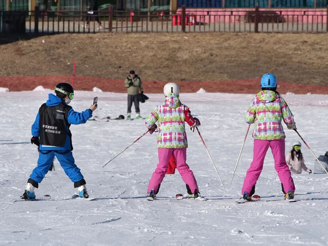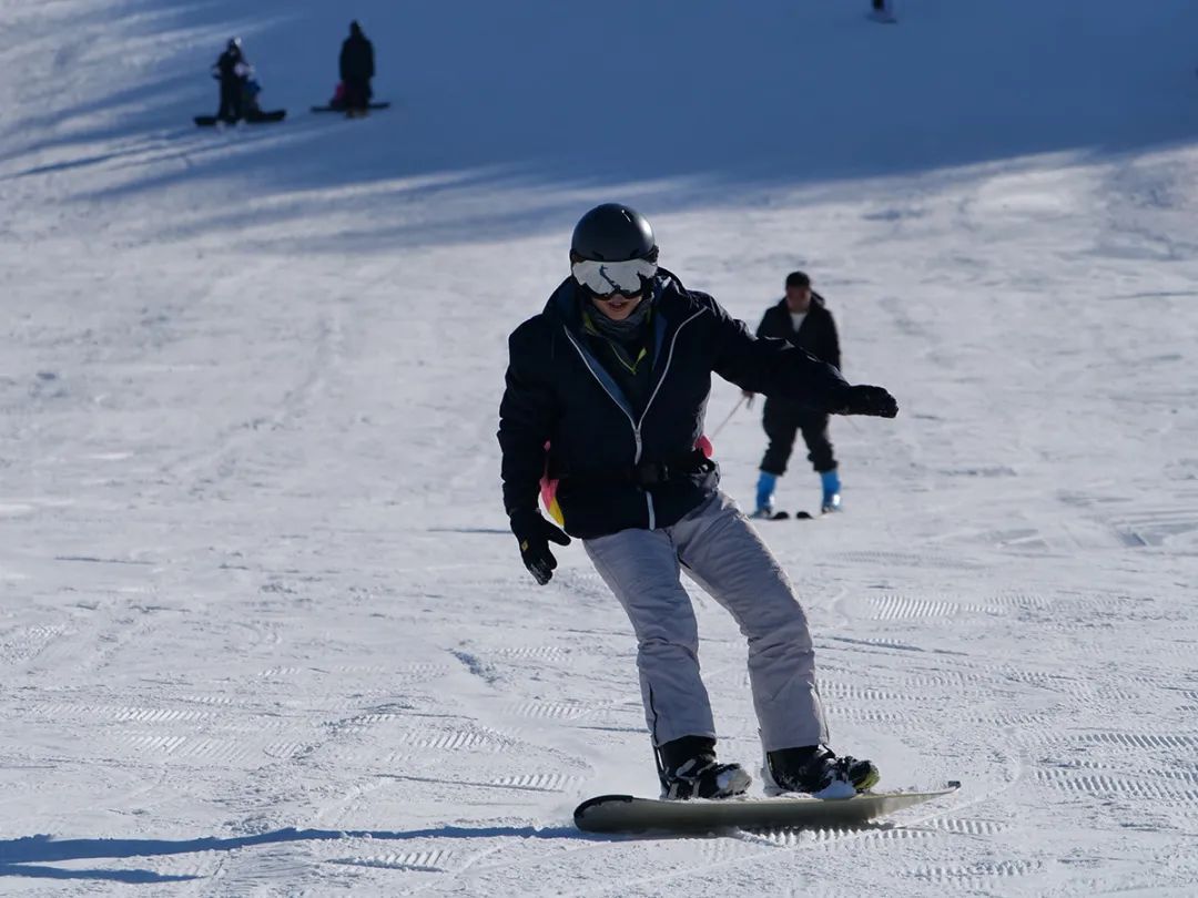 开放首日恰逢周末,晴好的天气令人丝毫感觉不到寒冷。滑雪爱好者纷至沓来,大家有序进入雪具大厅领取装备,待换装完成,便迫不及待地进入雪场开启今冬的滑雪“首秀”。中级道上,游客踩着雪板飞驰而下,身姿轻盈,一个急停,雪板激起洋洋洒洒的雪花,十分潇洒。而一旁的初级道上,初学者在滑雪教练的指导下,小心翼翼起步,随着一次次地练习动作,掌握要领,在雪场上“渐入佳境”。