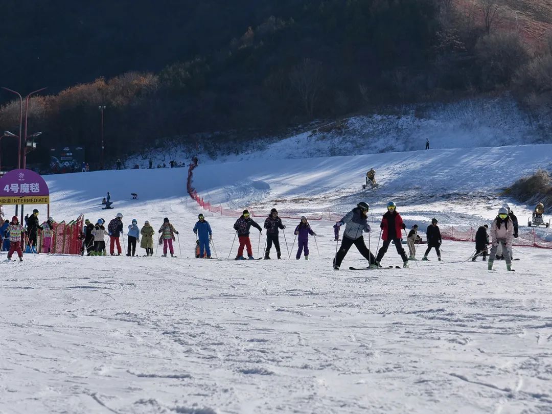 北京莲花山滑雪场占地总面积约2000亩。拥有初、中、高级及娱乐雪道共7条,最大坡度比≥35%,最长雪道长度超800米,可以满足不同滑雪爱好者的多样需求。雪友们在不同雪道上,或进行专业训练,或驰骋飞扬,或享受亲子时光,尽情感受冬日冰雪运动带来的乐趣。