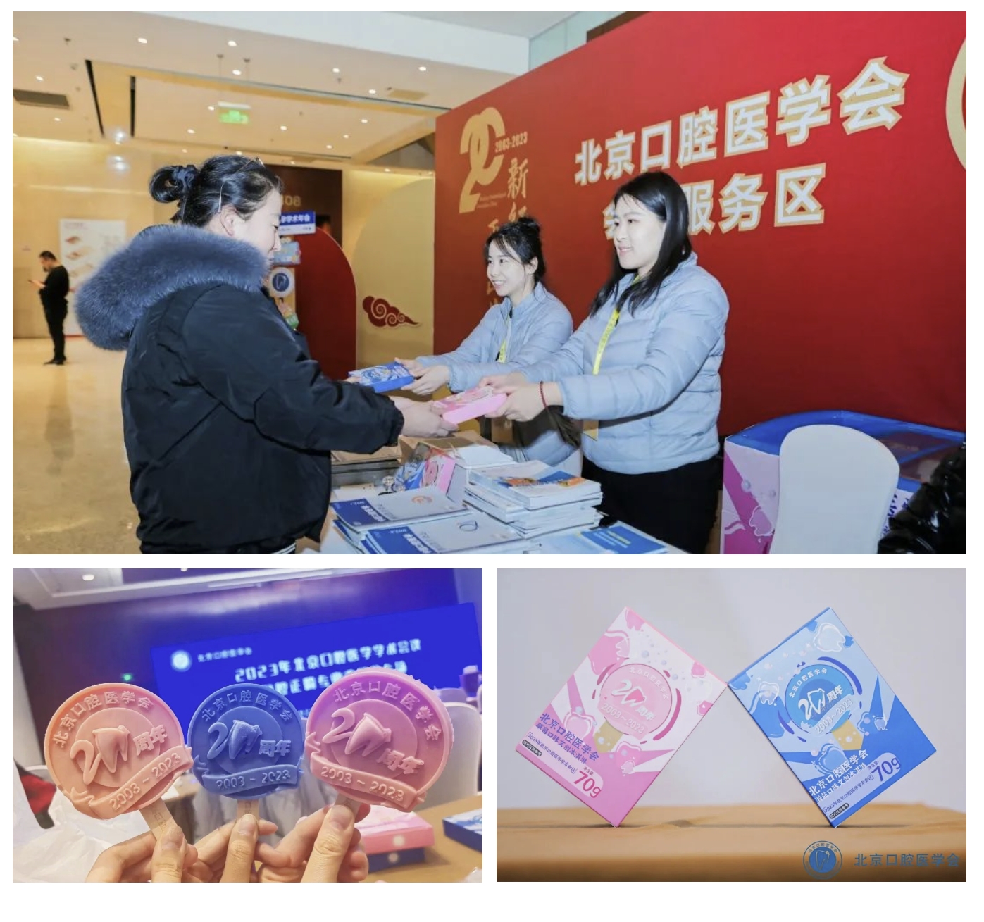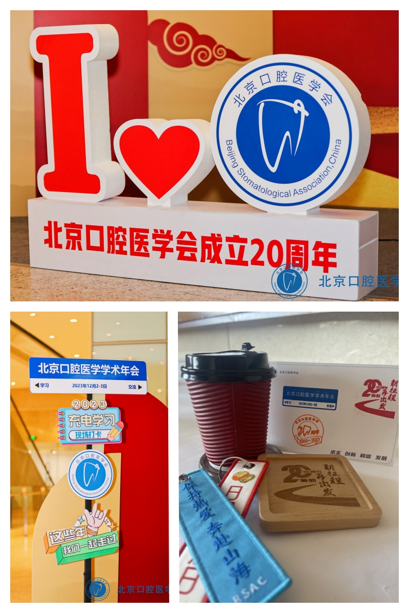 2023年是北京口腔医学会成立20周年,北京口腔医学会在大会现场设置了“新征程、再出发”为主题的会员服务区,领取文创雪糕、纪念印章打卡等小环节,为学术会议现场增添了温馨、喜庆的氛围,与会口腔人在参加学术活动的间隙纷纷到LOGO墙前合影留念。