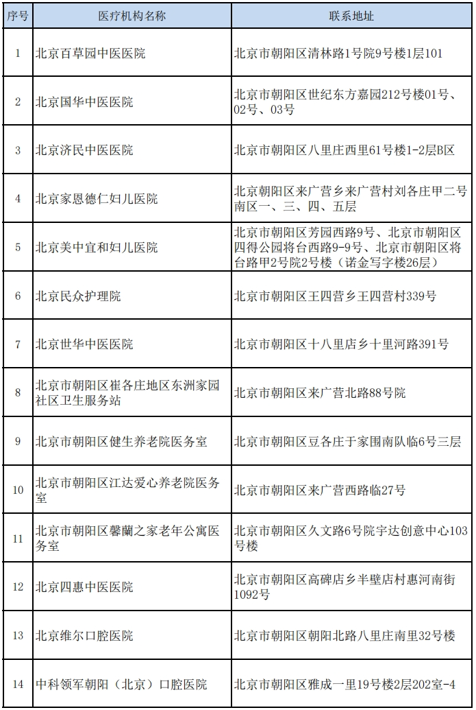 朝阳区2023年新增定点医疗机构