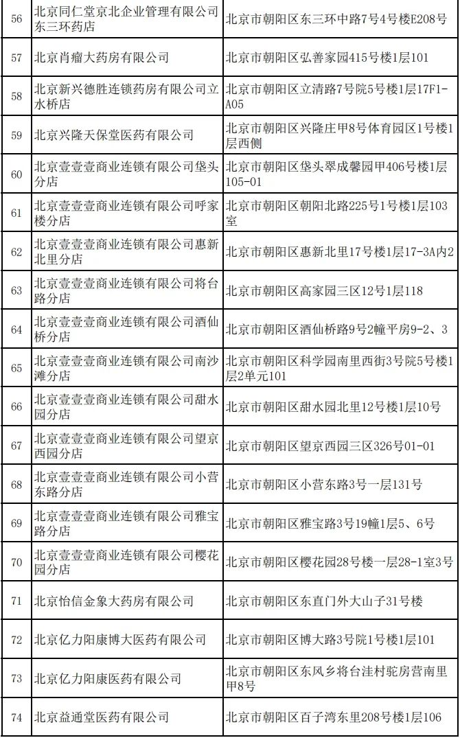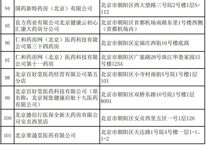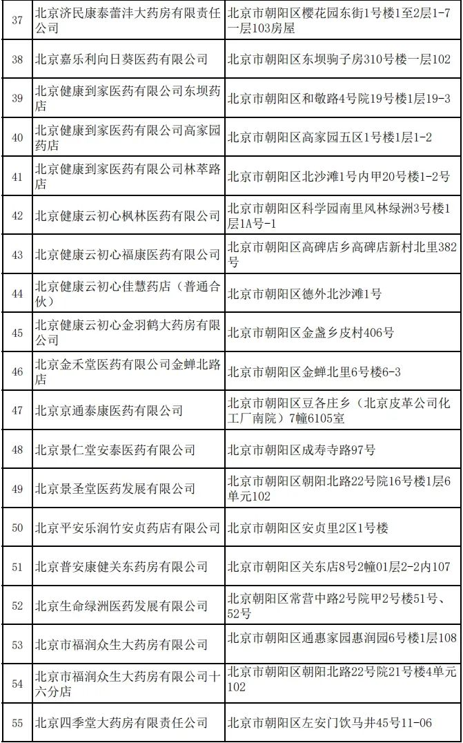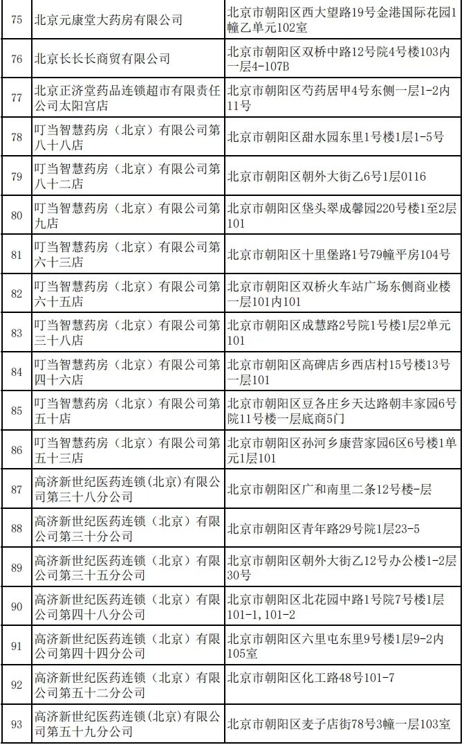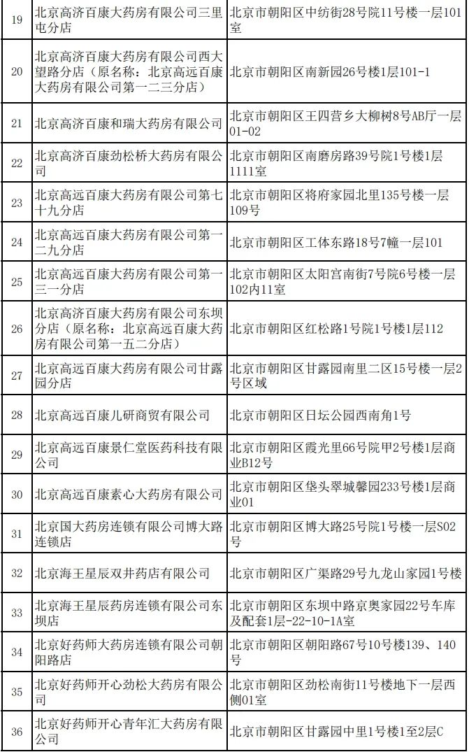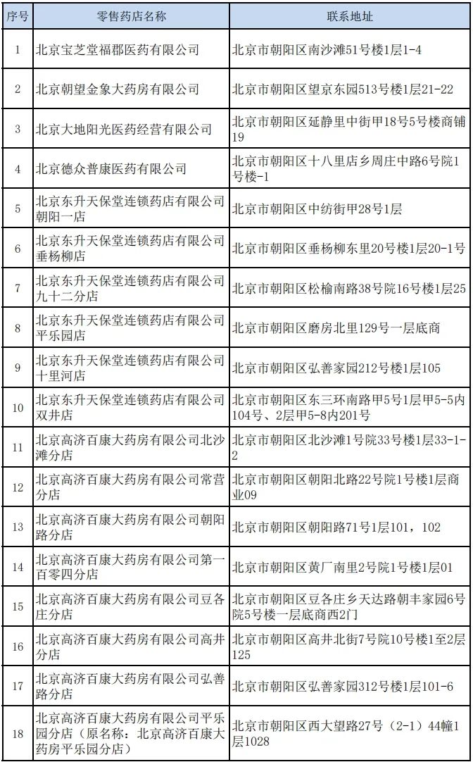 朝阳区2023年新增定点零售药店