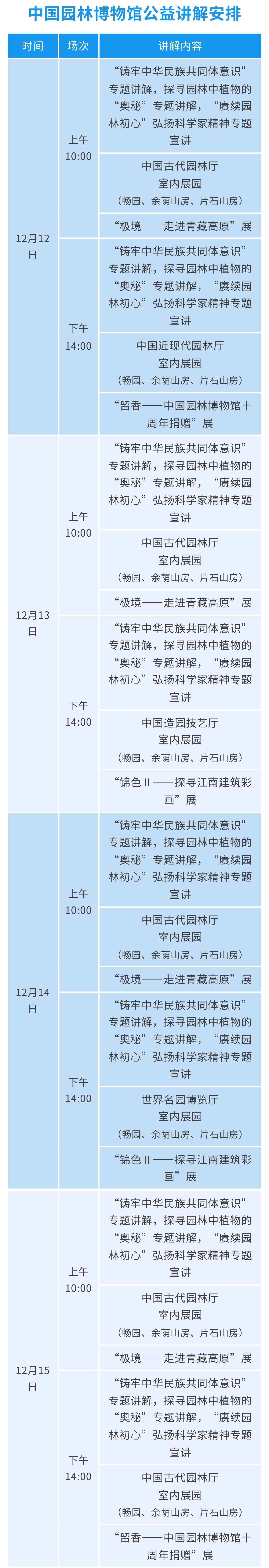 中国园林博物馆公益讲解安排(12月12日—12月15日)