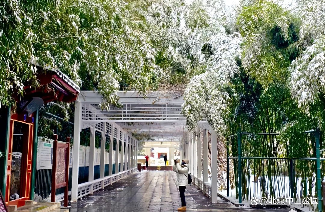 漫天飞雪与园内建筑相互映衬,素色如锦,岁月从容。