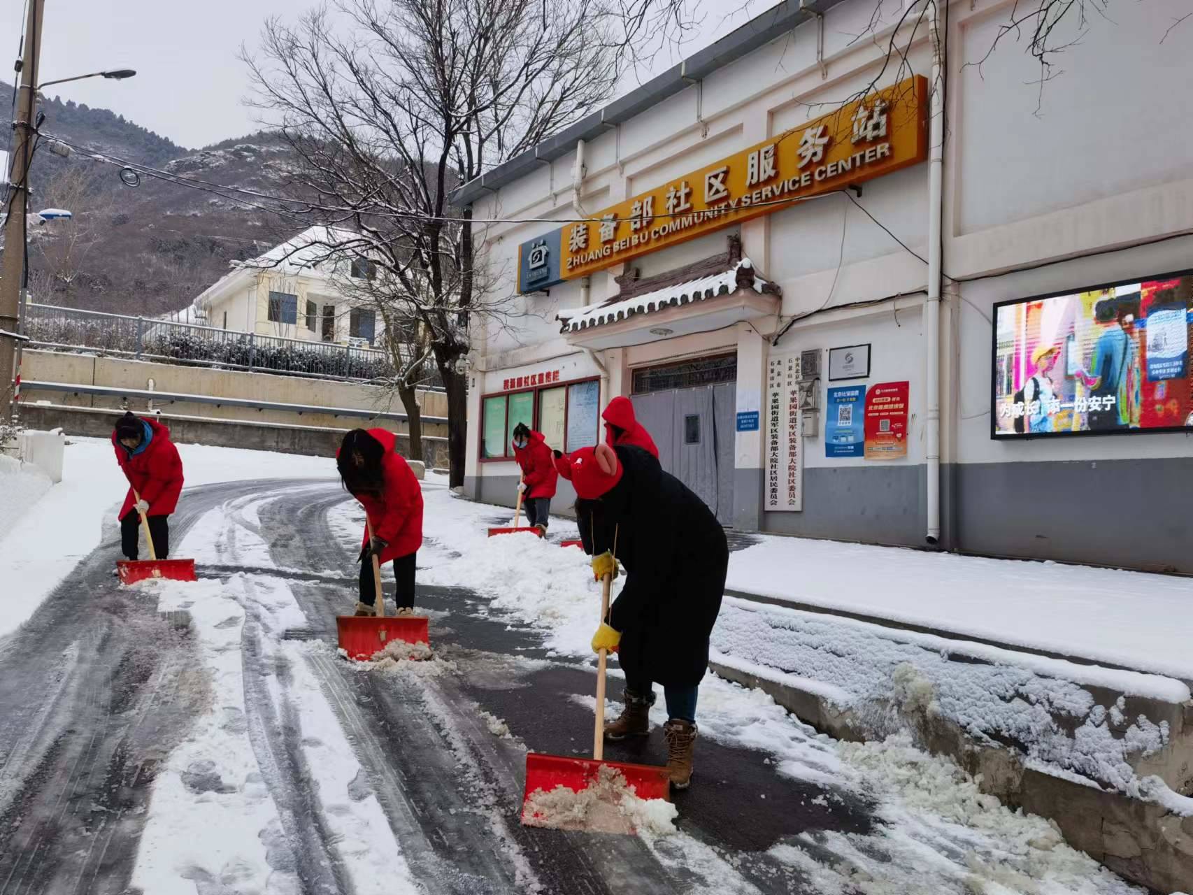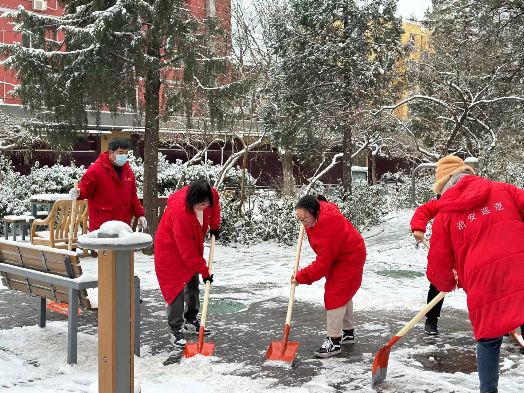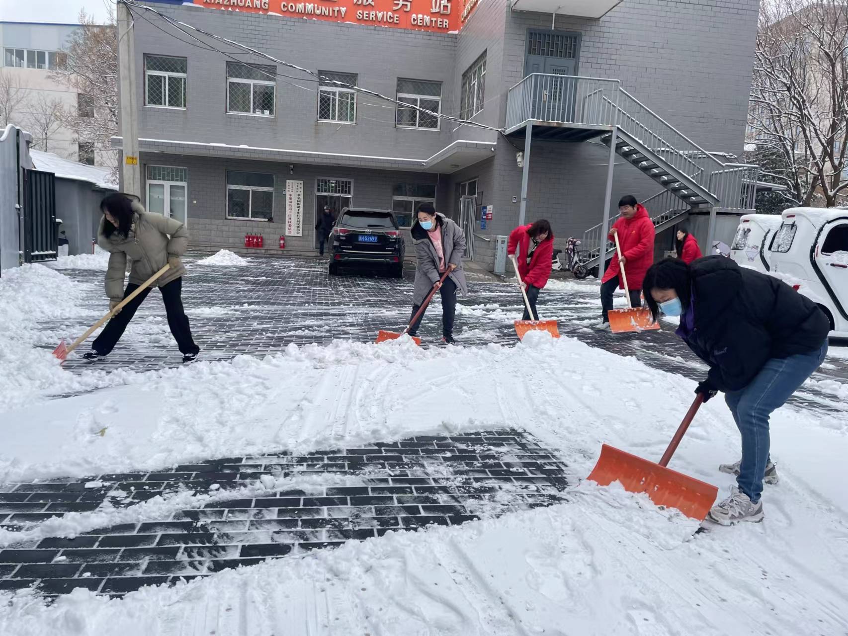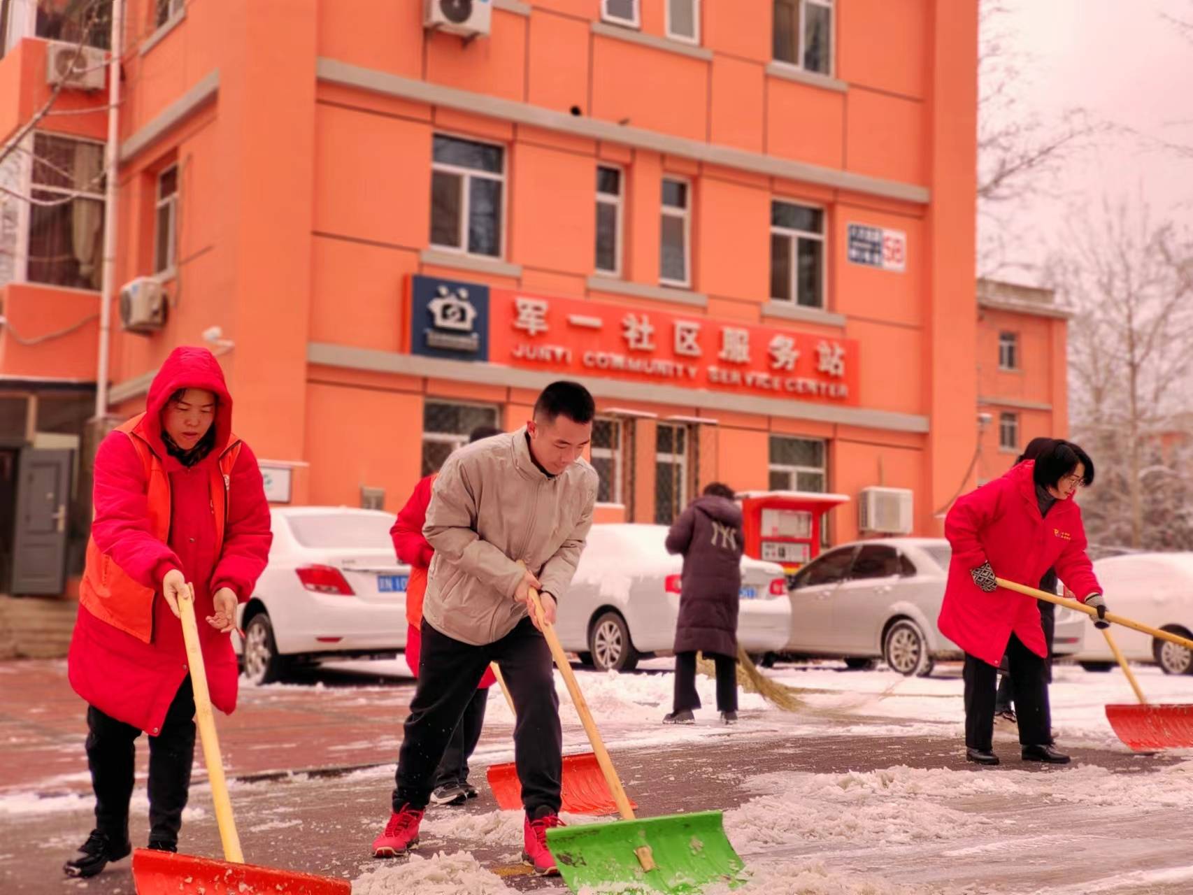 各个社区也积极开展铲冰扫雪工作。军一、下庄、海一、海三等社区对居委会门前积雪进行了清扫,方便居民前来办事;苹一、苹二、海二、八大处、西黄新村等社区积极开展居民楼单元门前的扫雪铲冰工作,确保居民正常出行;西黄新村中里社区联合辖区建筑企业共同开展主路两侧便道积雪清扫工作,维护路面环境秩序。