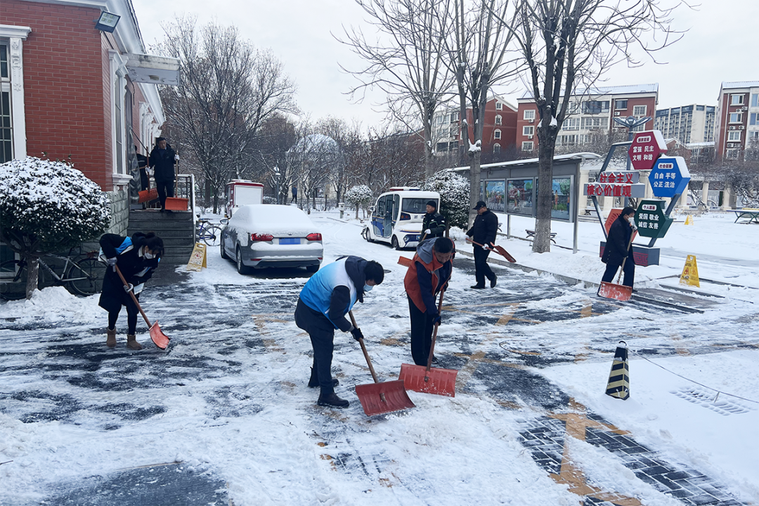 各镇街、物业集团也积极组织机关干部、村(居)委会工作人员、网格员、志愿者做好扫雪铲冰工作,保障道路畅通和市民出行安全。