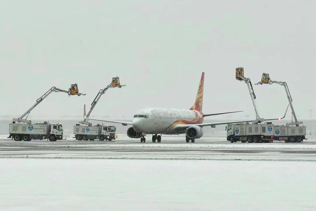 首都机场开展除冰雪保障工作。