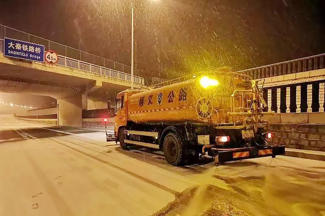 顺义环卫公司及时启动扫雪铲冰工作,所有车辆、人员上路开展清扫作业,主路采取“机械除雪为主、融雪剂融雪为辅”方式,人行步道使用机械和人工除雪相结合的方式进行。目前主要道路基本畅通,未出现积雪和结冰情况。作业人员随降雪情况加强巡视检查和道路清扫。
