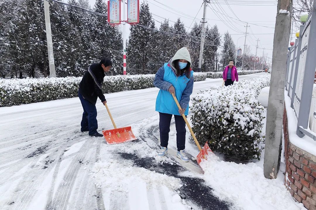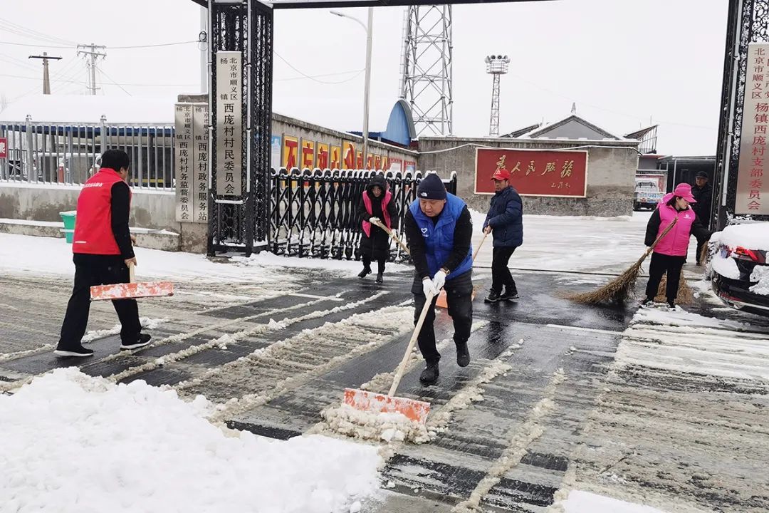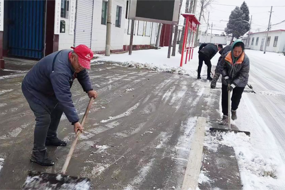 杨镇西庞村工作人员开展除雪作业。