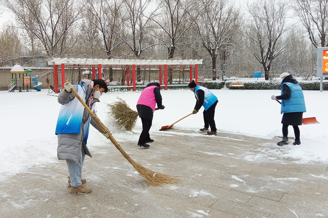 北石槽镇志愿者开展扫雪行动。