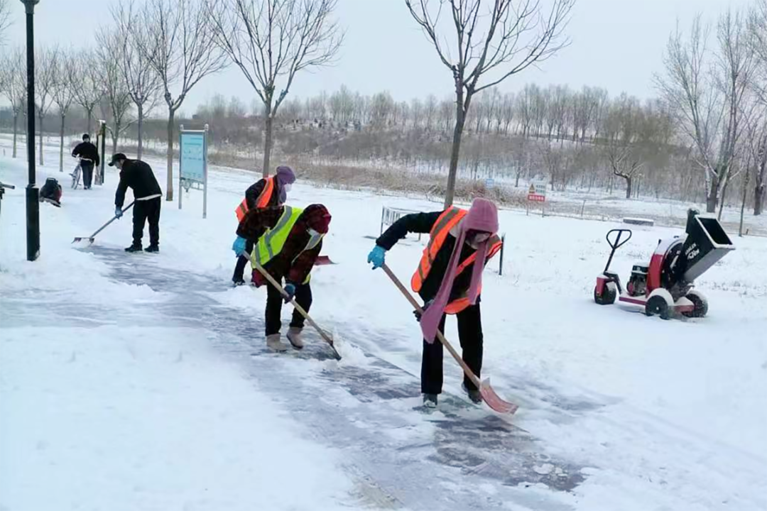 区文化和旅游局提前发布通知要求企业做好降雪降温天气应对工作,及时组织人员做好扫雪铲冰及警示标识设置工作,防止因路面湿滑导致游客摔伤。文旅集团各单位有序清扫道路及周边积雪,各园区恢复整洁面貌,道路畅通,为游客提供了安全保障。