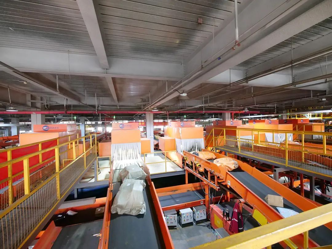 圆通速递有限公司自动化分拣流水线正在作业。