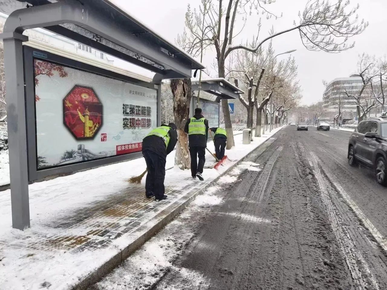 雪情就是命令,11日一大早,荣华街道城市管理办公室综合执法队工作人员也加入到除雪铲冰工作中,共计出动30人次、6车次对辖区医院、地铁公交车站等重点区域开展执法巡查工作,督促责任人及时扫雪。