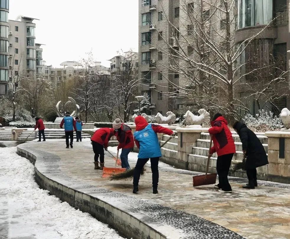 12月11日,北京迎来今冬首场降雪,纷纷扬扬的雪花飘扬而至装点了大地,也吹响了北京经开区荣华街道各社区物业人扫雪铲冰的冲锋号角,全体员工总动员打响一场扫雪除冰“攻坚战”,保障居民出行安全。