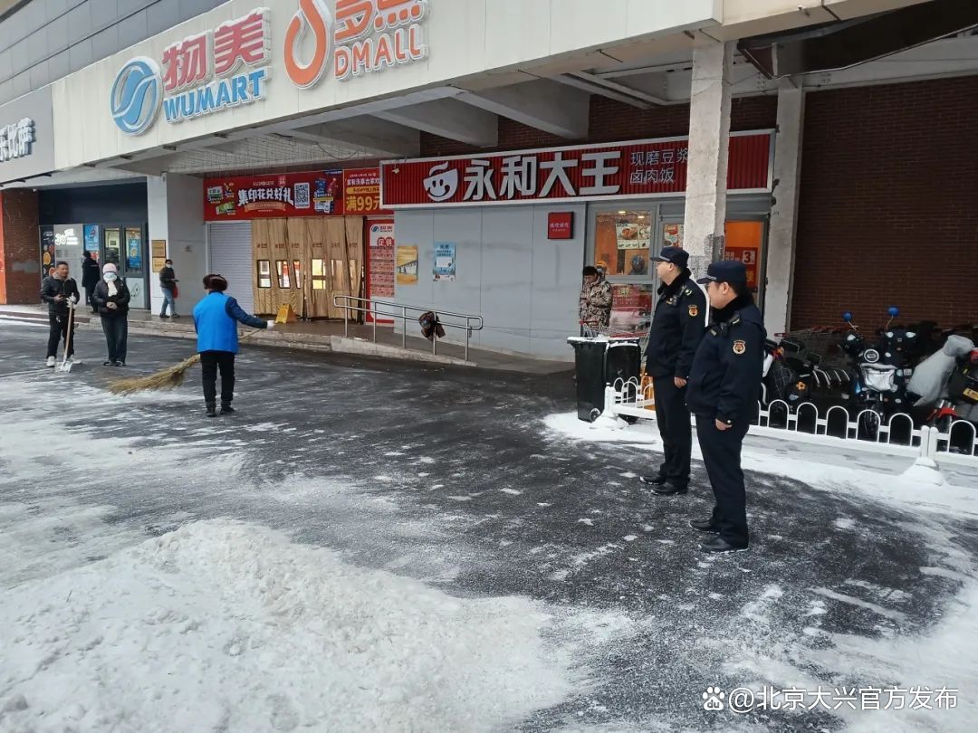 加强社会面巡查管控,综治、城管、网格及第三方专业力量加强街面巡查,确保门前三包区域、医院、学校、商超周边等重点区域环境秩序平稳有序,辖区内扫雪铲冰工作落实到位。