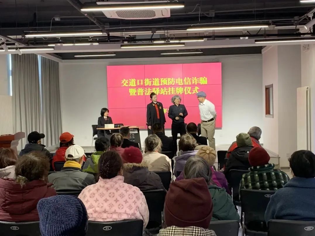 “诈骗是可防性犯罪,反诈就是与犯罪分子进行攻防对抗、在与时间赛跑,绝不能止于见招拆招,而是要让防范工作走在诈骗前面。”交道口街道普法驿站的第一课聚焦“刷单返利”“虚假投资理财”等新型高发案件,刑事审判庭副庭长罗兰向干部群众解读电信网络诈骗的危害及防范措施,并携“兰心”志愿普法小组表演了自编普法短剧《法槌的温度之粮票风波》,向街道赠送东城法院干警编著的《法槌下的正义—全民反诈指引》,受到欢迎和好评。