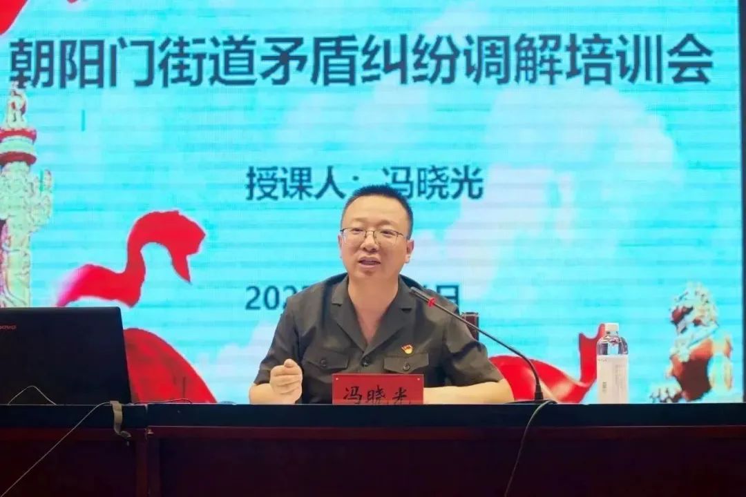 在朝阳门街道挂牌后,东城法院立案庭(诉讼服务中心)副庭长冯晓光为街道社区干部发放北京法院12368“一号响应”诉源治理机制宣传册,结合街道通过12368热线与法院充分互动、实现源头治理的鲜活案例,向大家详细介绍制度设计初衷、工作机制、接入流程、服务渠道、办理时限等内容,就大家关心的法律问题,进行现场讲解与答疑互动。