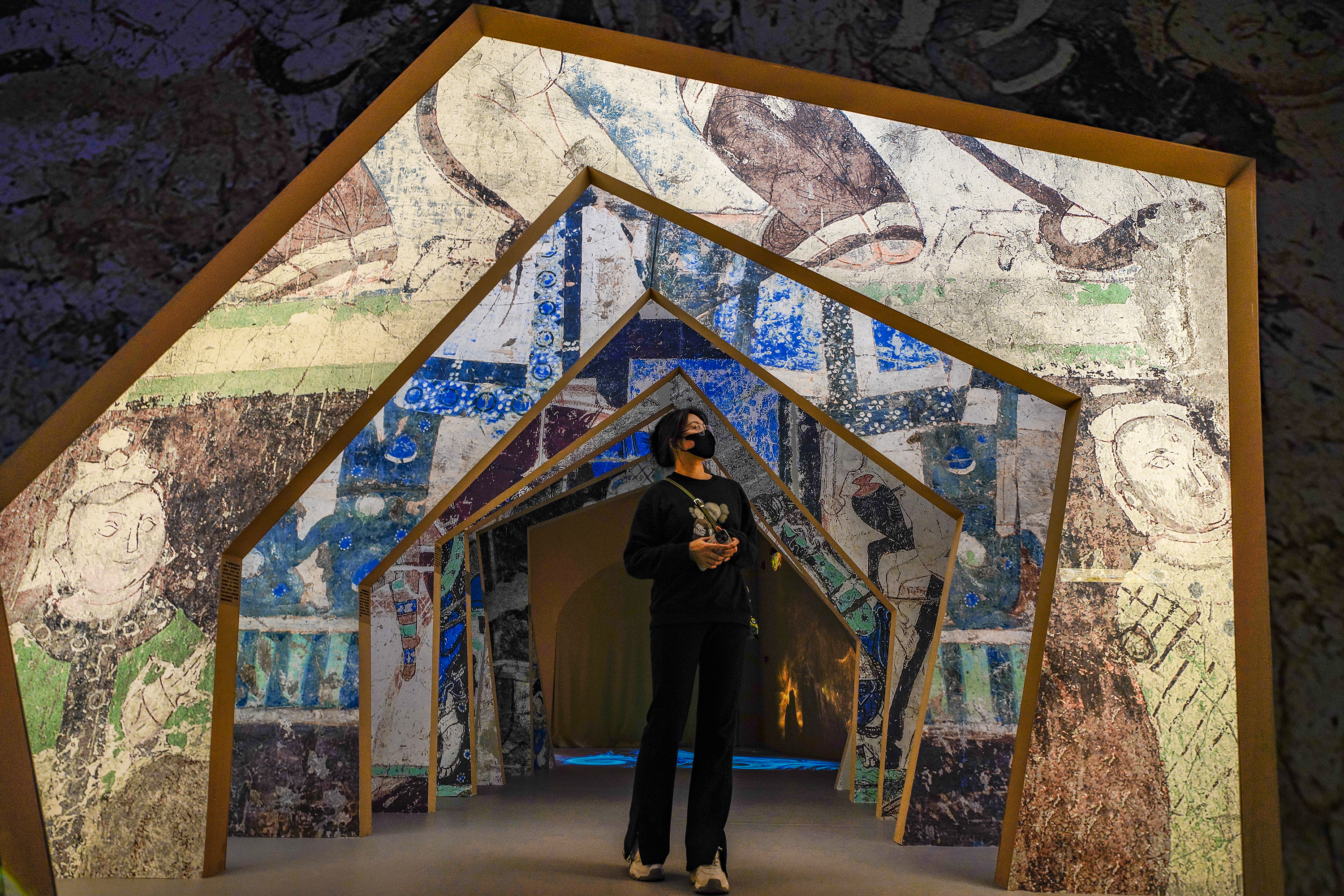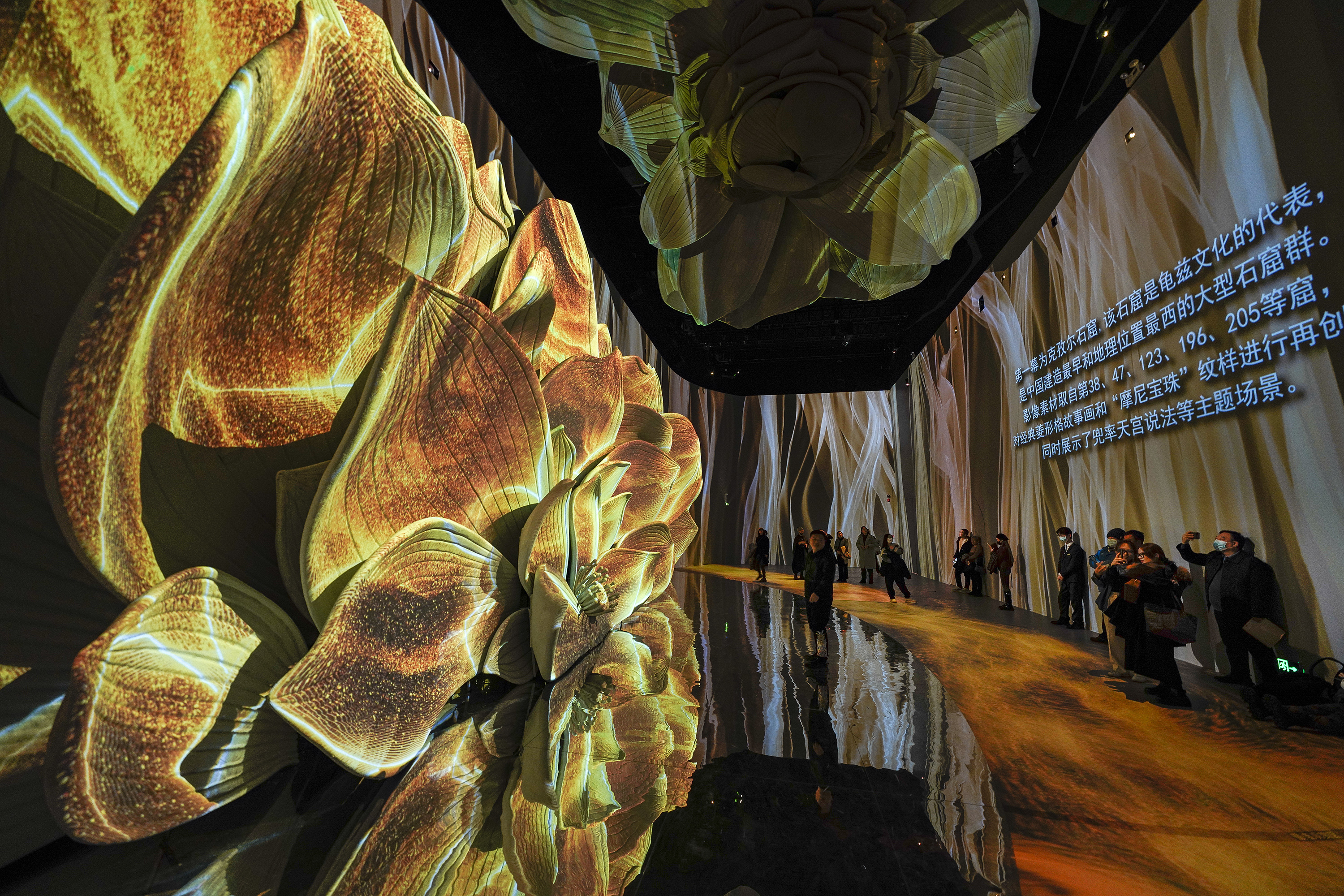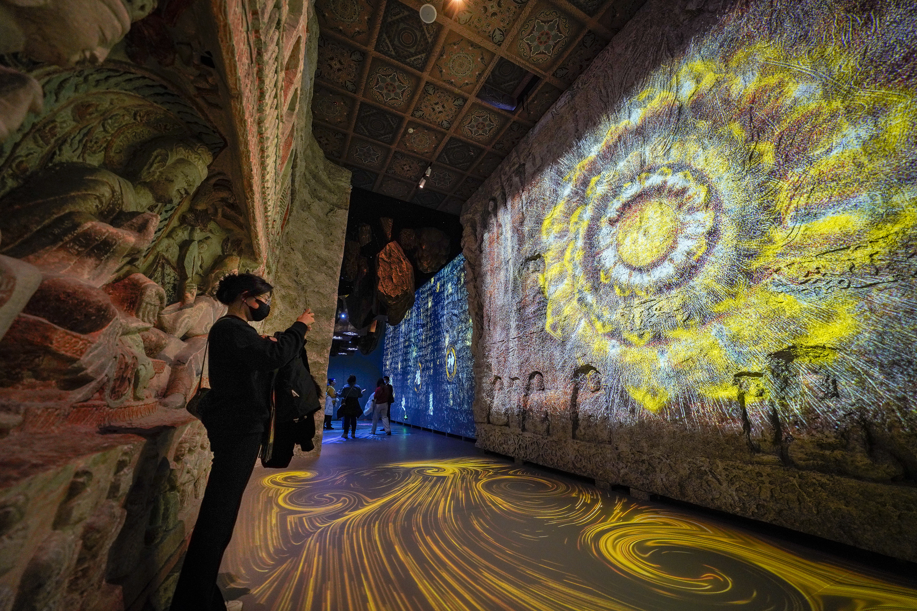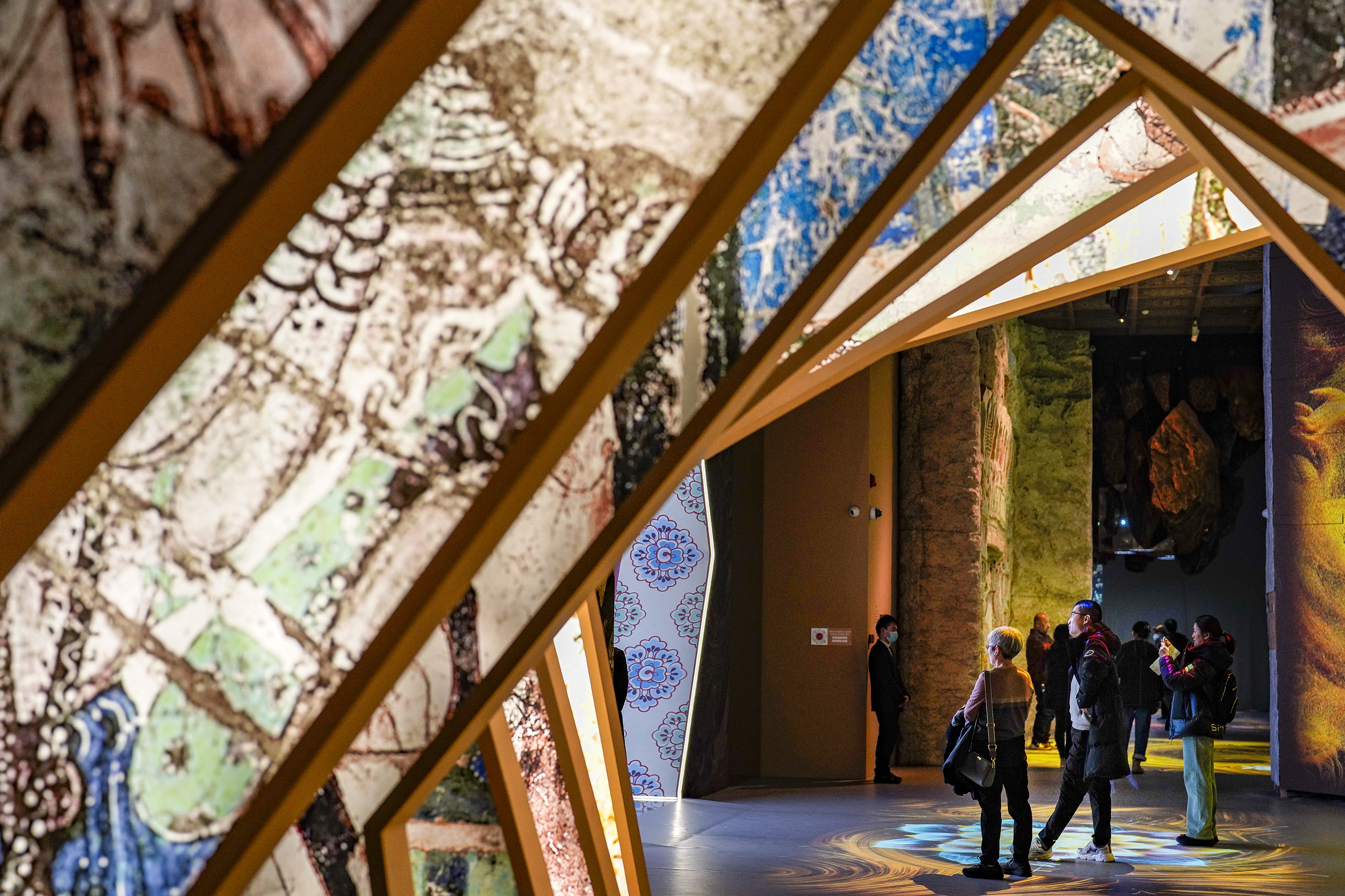 “华彩万象——石窟艺术沉浸体验”日前在中国国家博物馆对公众开放,五大石窟“全景”亮相,邀您沉浸体验。